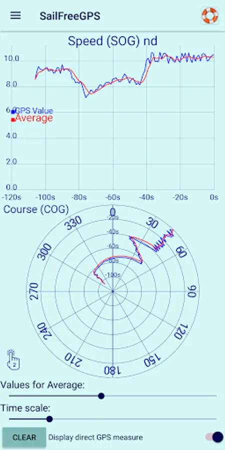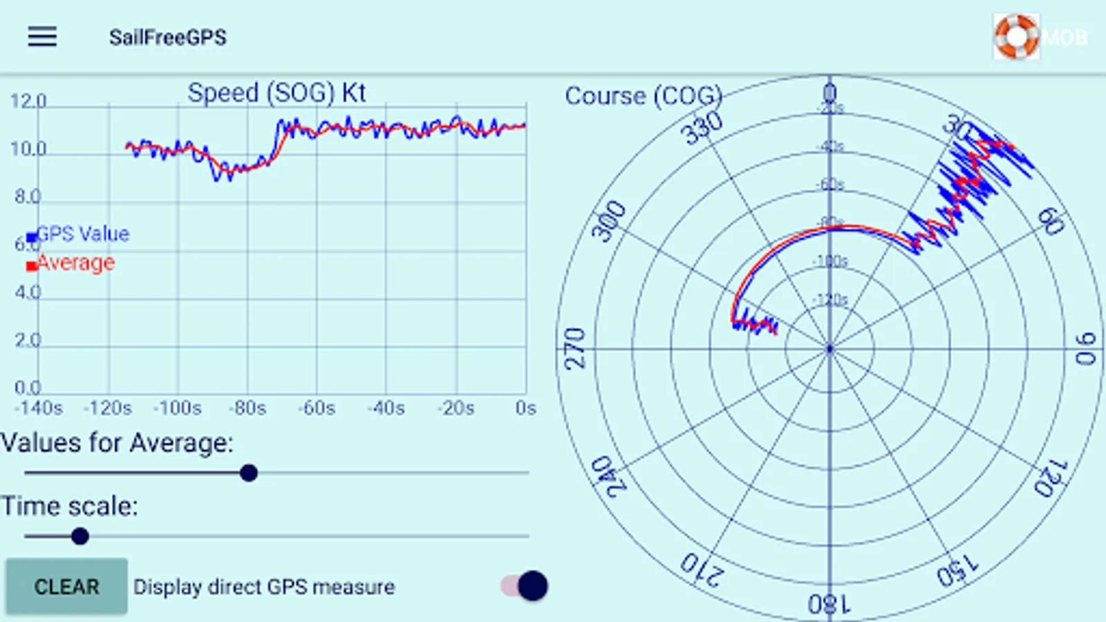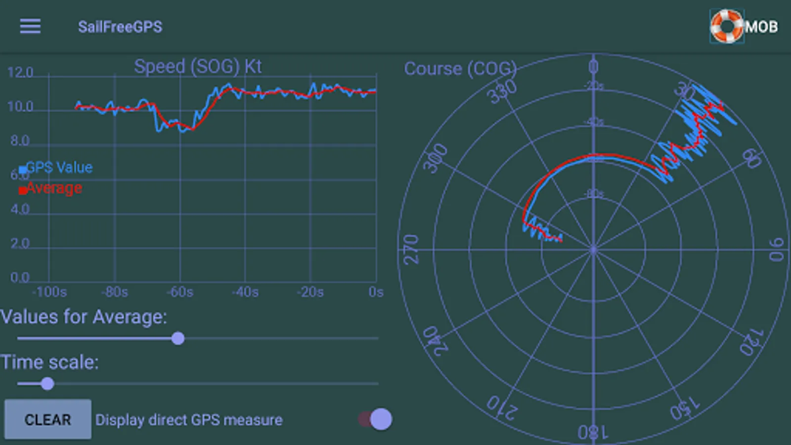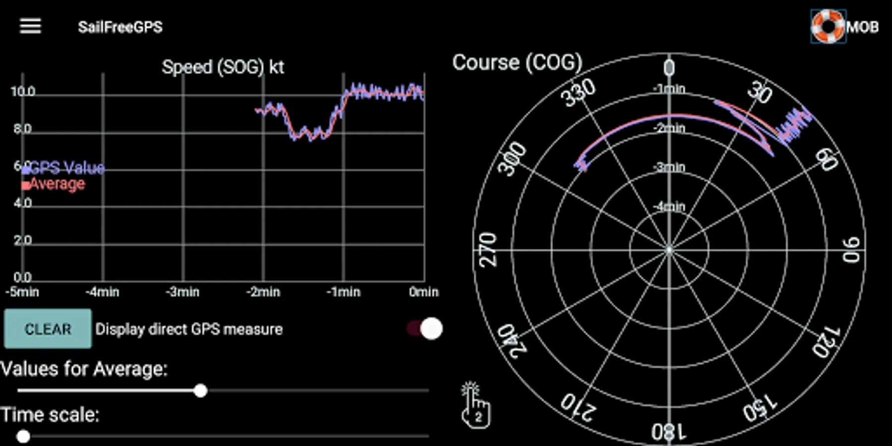 ✓ SailFreeGPS displays COG and SOG history (6h) to help you to see trim effect on your sails.