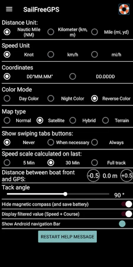 ✓ SailFreeGPS filters GPS information for more accuracy (average of an amount of last measures you can set).