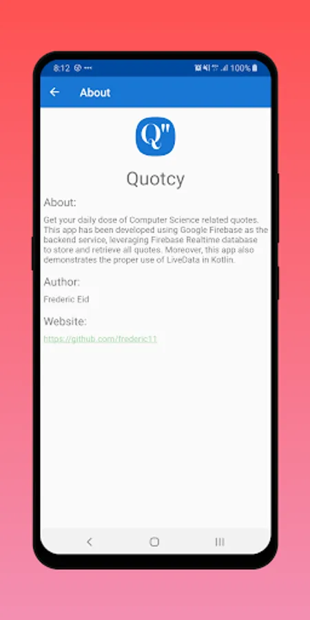 This app has been developed using Google Firebase as the backend service, leveraging Firebase Realtime database to store and retrieve all quotes.