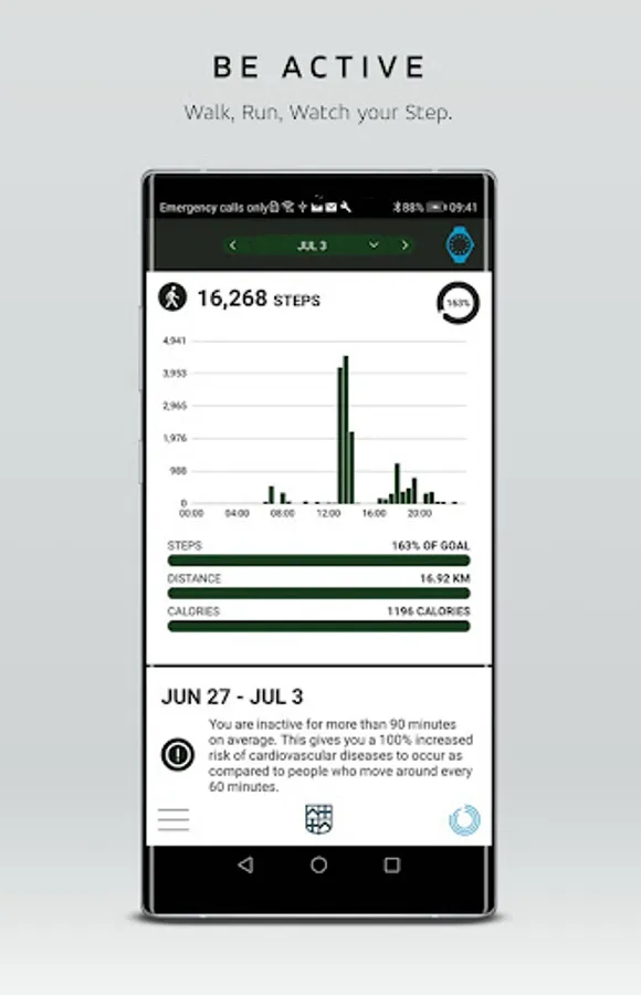 Easy-to-understand graphics provide insight into how much you have moved and slept during the day, week, or month. Goals and dynamic coaching encourage getting a better understanding of yourself, which in turn helps your well-being.