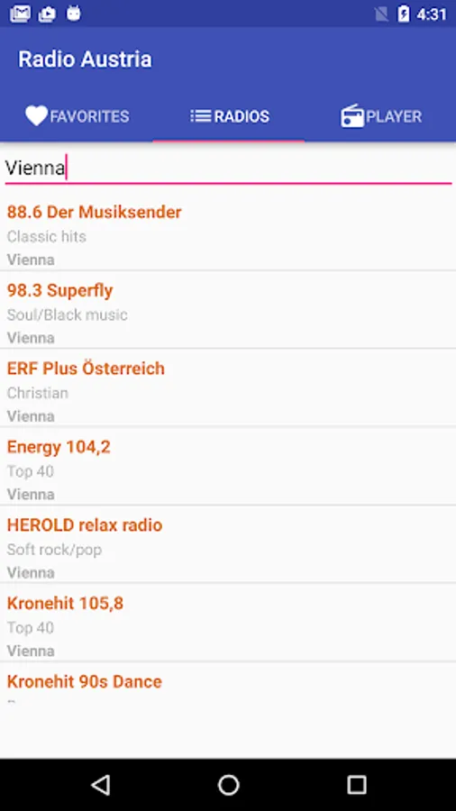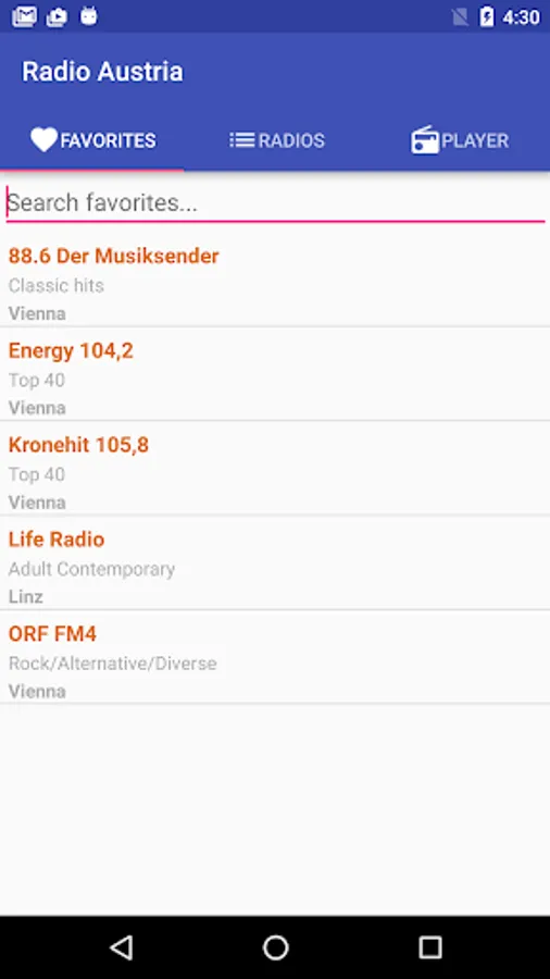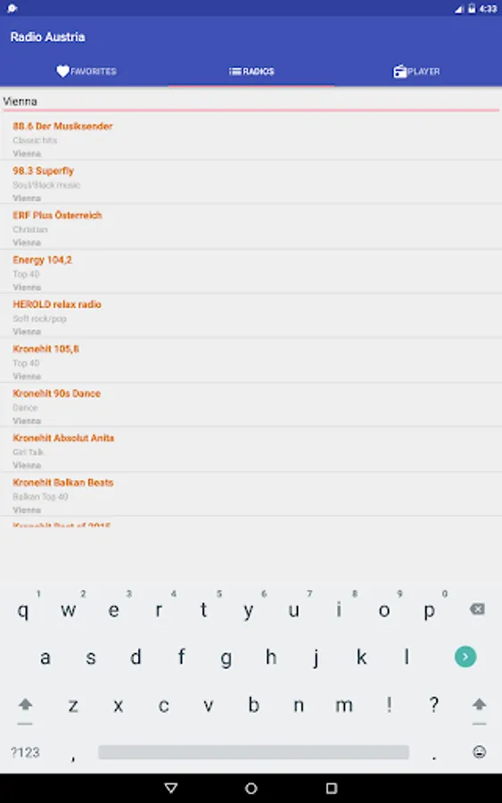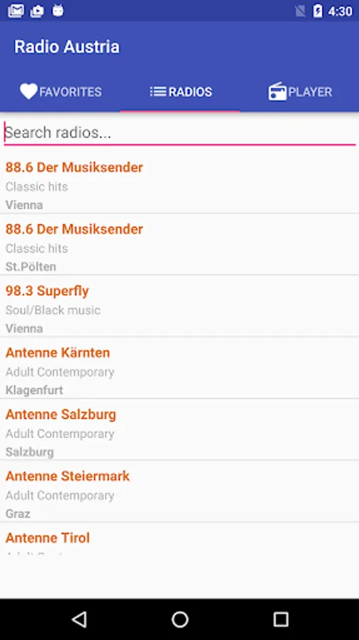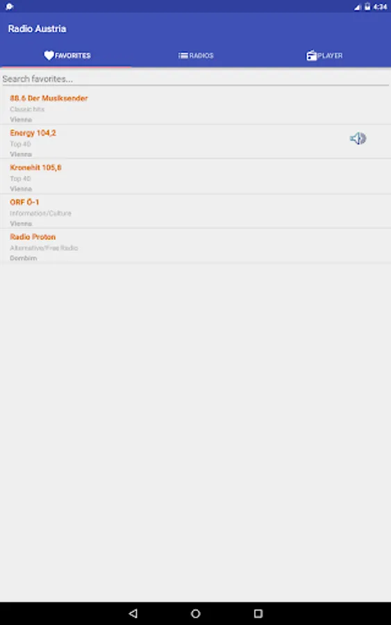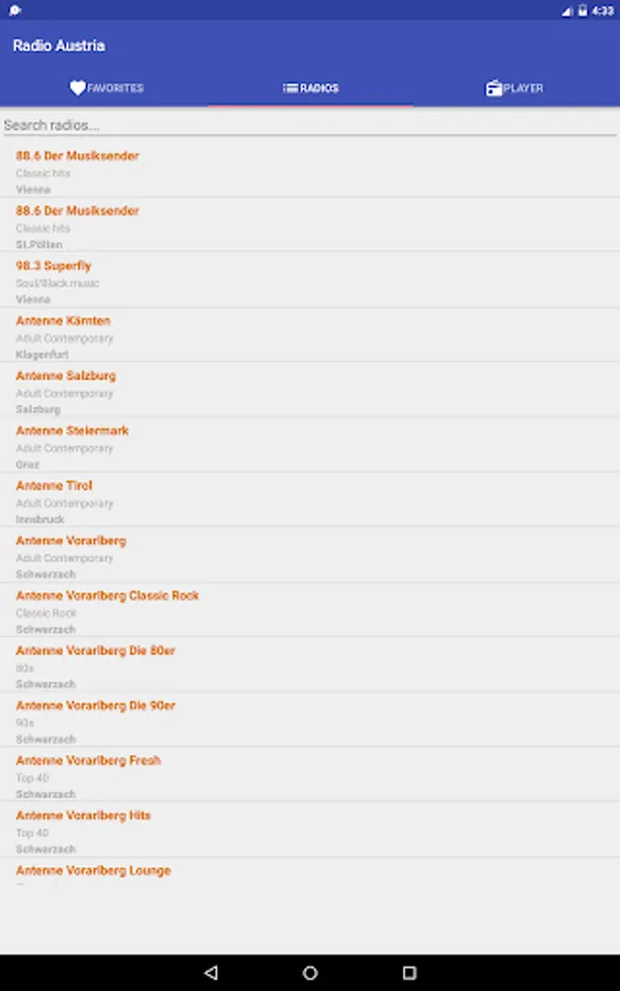 This application comes with over 120 radio stations from Austria completely free! You can search by station name, location or genre.