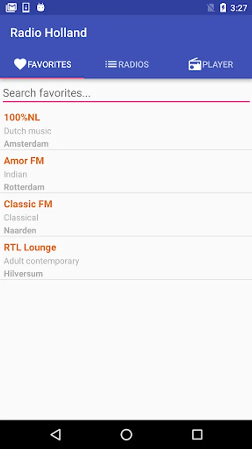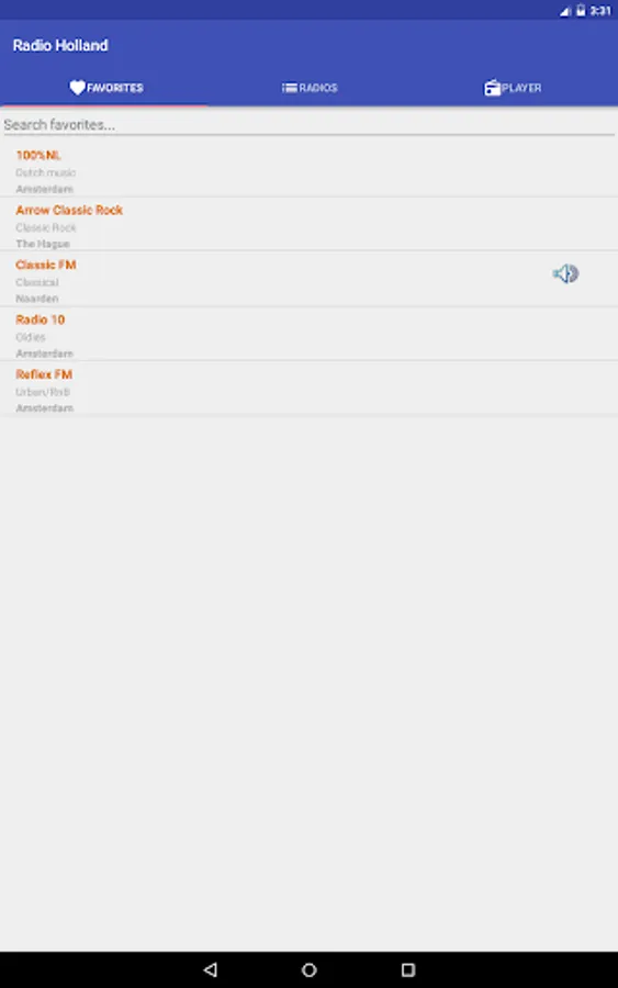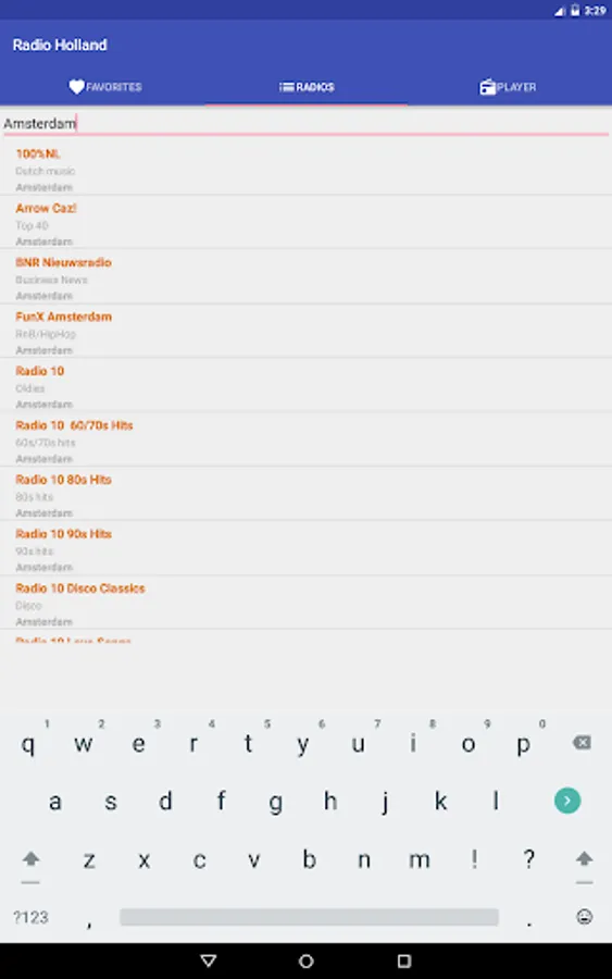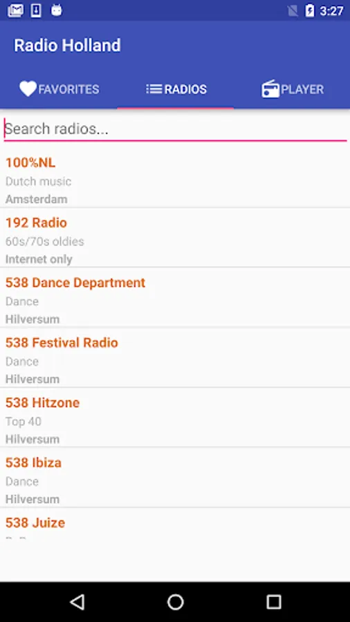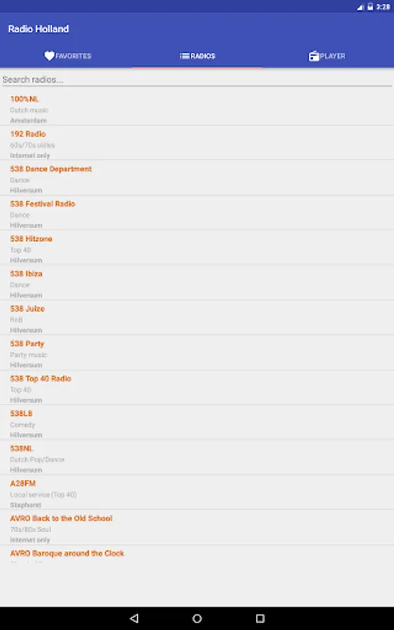 This application comes with over 310 radio stations from Holland completely free! You can search by station name, location or genre.