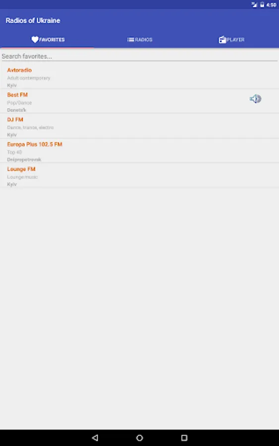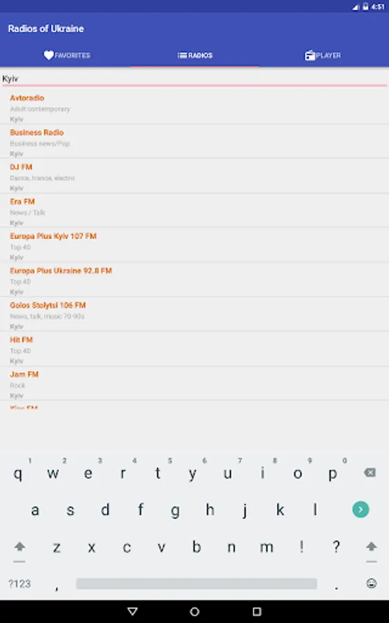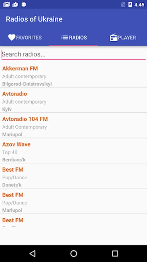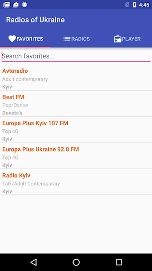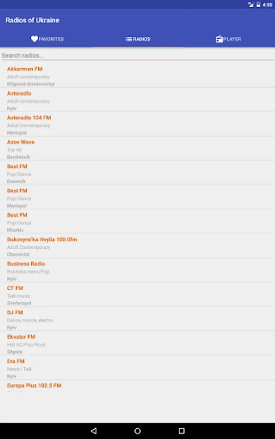 This application comes with 110+ radio stations from Ukraine completely free! You can search by station name, location or genre.
