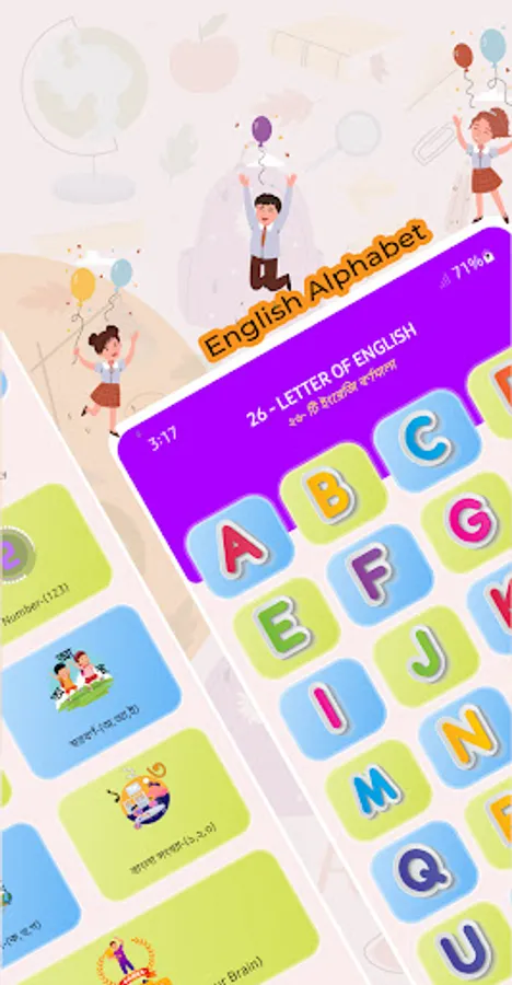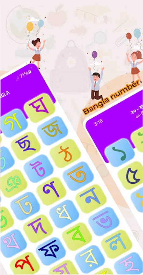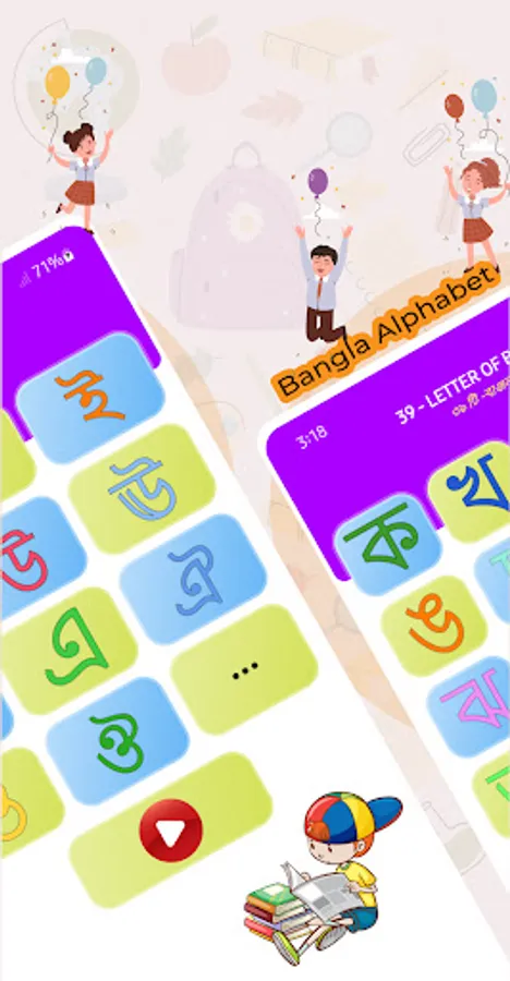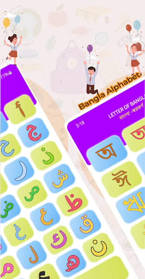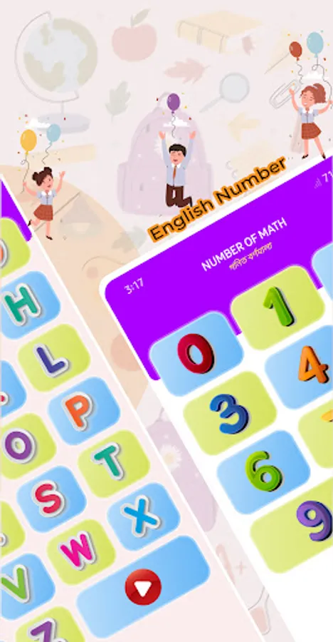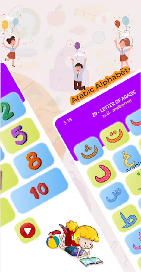 With our innovative app, children can explore and learn letters in five different languages: Arabic, English, Bangla, Bangla bornomala, and Math. Each letter comes to life with funny and captivating sound pronunciations, ensuring an interactive and immersive learning environment.