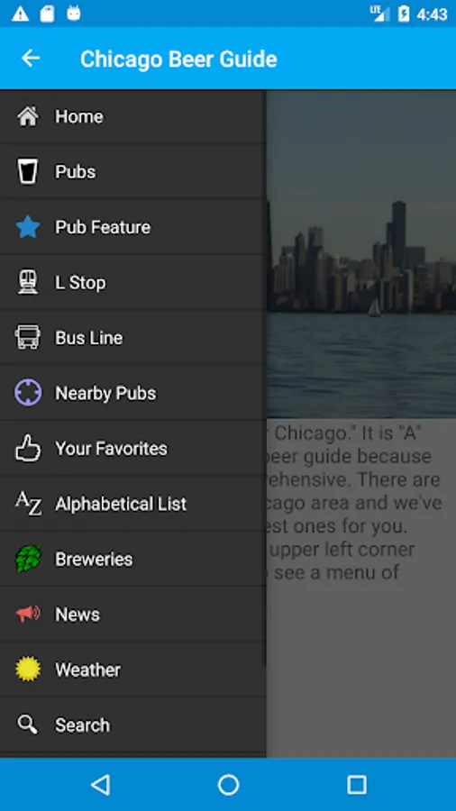 Search by neighborhood, 'L' stop, bus line or the pubs nearest to your current location.