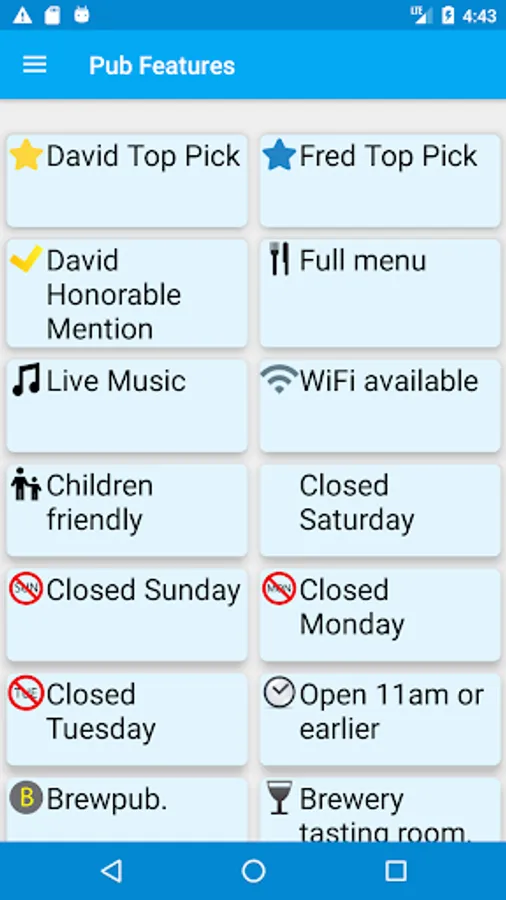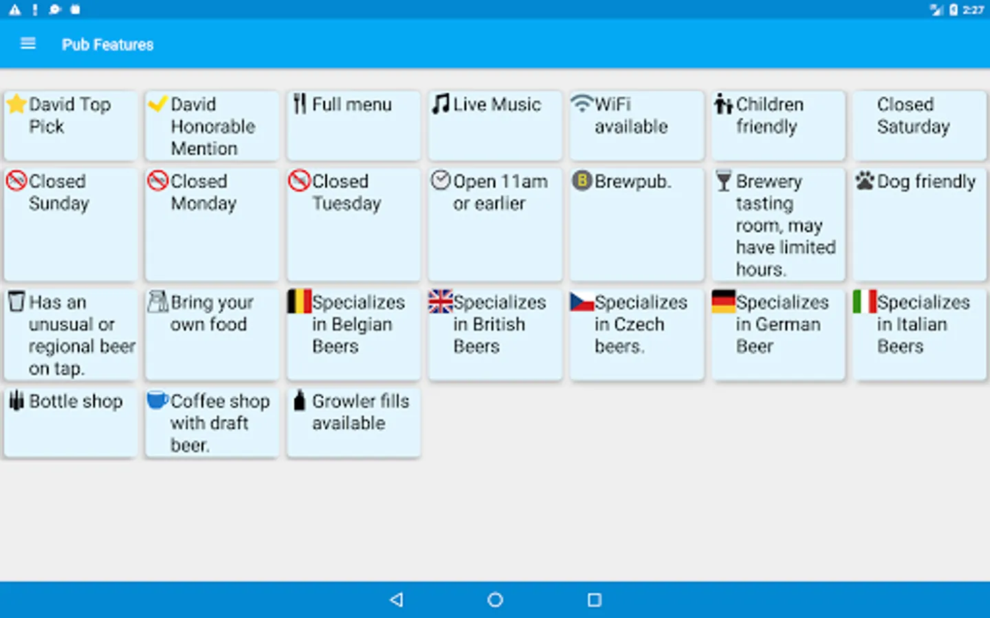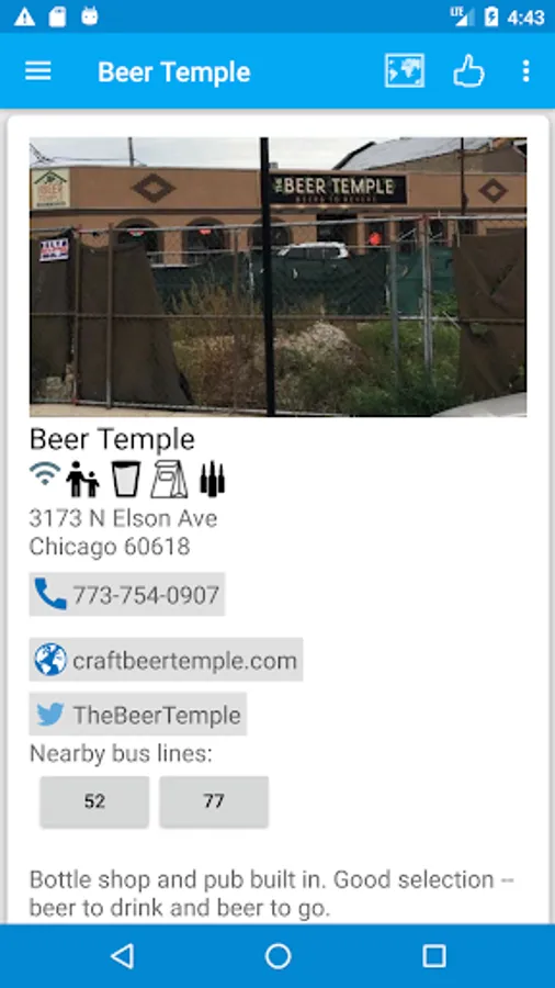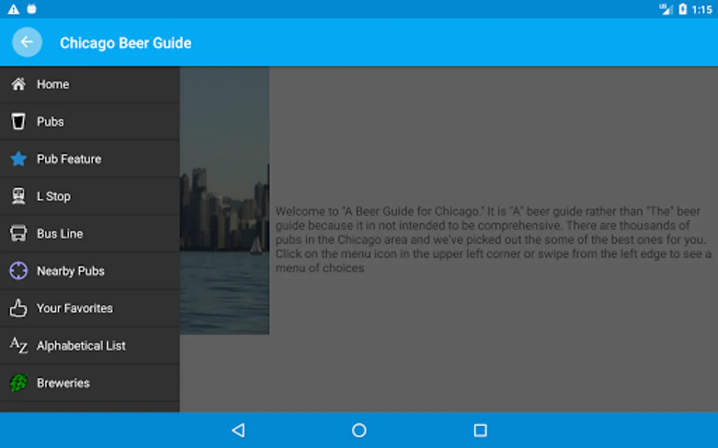 Each entry contains a review, nearest public transportation, contact info, website and twitter handle for each pub. Check the pub's twitter feed for news without leaving the app. A map will show the location of the pub as well as nearby listed pubs.