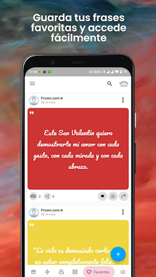 ❤Share: Share motivating phrases with friends and followers on your social networks.