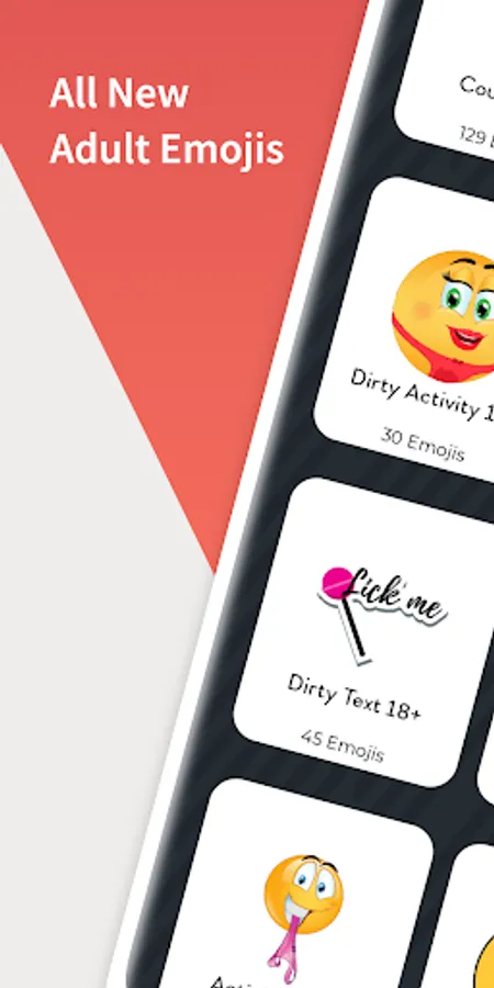 Take your daily conversations to next level with adult emojis! Adult Emoji App have the largest and unique collection of Adult Emojis, Dirty Emojis, Flirty Emojis, Love Emojis, Sexy Emojis and naughty emoticons which helps you to express yourself in a whole new way with chats in Facebook, WhatsApp, Twitter, Instagram, Messanger and other top messaging apps.