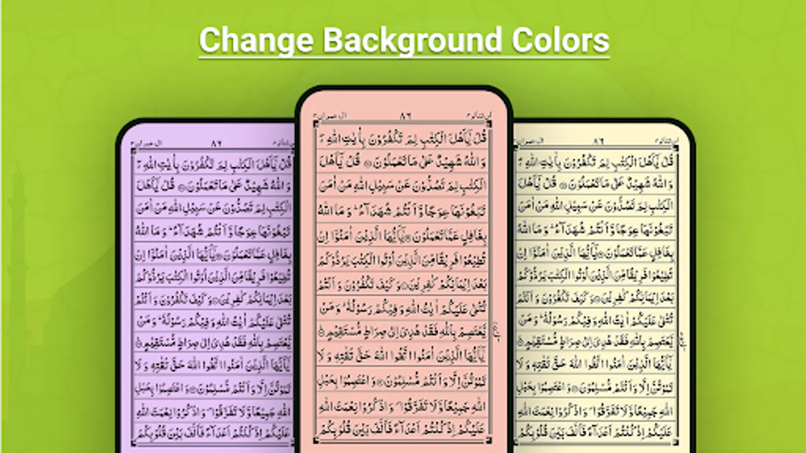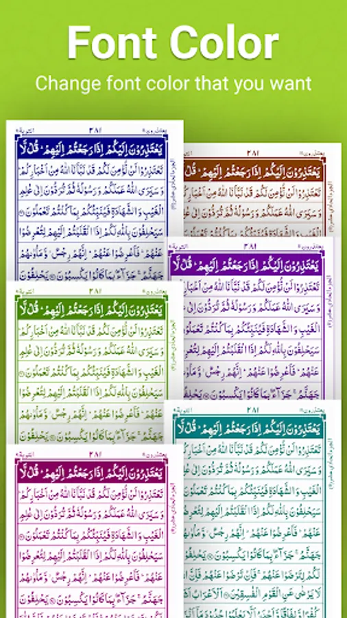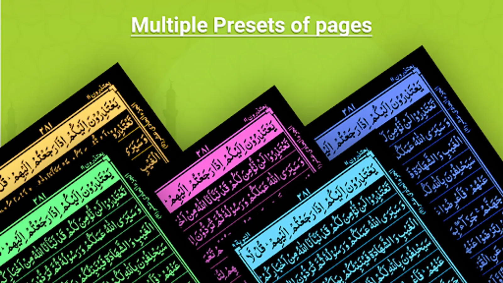 Arabic كتاب القران الكريم offline reciting compiled public holy Quran app offers personalized page cover colored layer or page screen saver to generate a lightest and dim light effect Holy Quran Pak offline app. Quran Majeed offline multiple color choice for page. القران الكريم for android is customized for reading assisting tools.