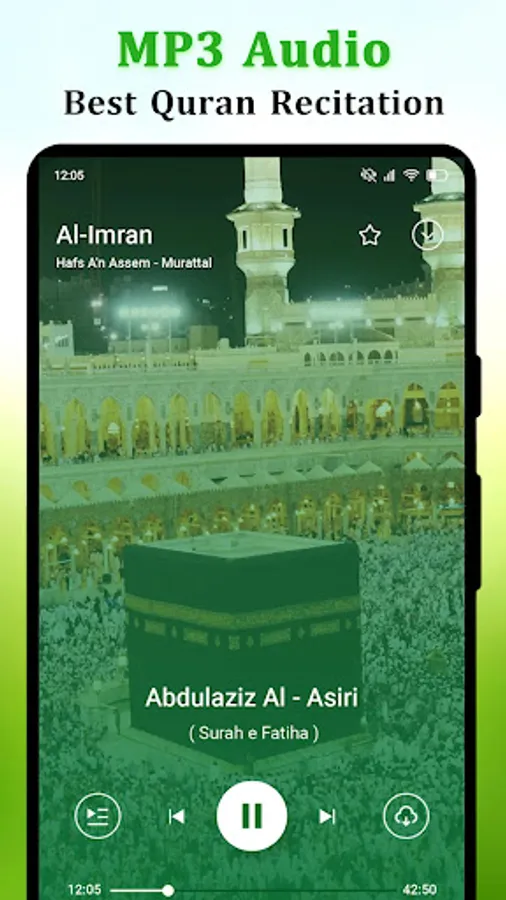 Mp3 audio Quran provides you the Quran in mp3 form, this app has decreased the hassle as now you can download and listen to the Quran in voice of your favorite reciter. You can access complete Quran in mp3 form. This app contains the complete recitation of mp3 Quran by 4 most renowned Reciters. You can listen to Holy Quran in form of chapters or complete surah’s by the help of dedicated Quran player where you can pause or stop at any part of recitation. A picture of the Masjid al-Haram in Makkah, in the background when the Meccan Chapter “Surah” is played, and a picture of the Prophet's Mosque when the Civil chapter is played.