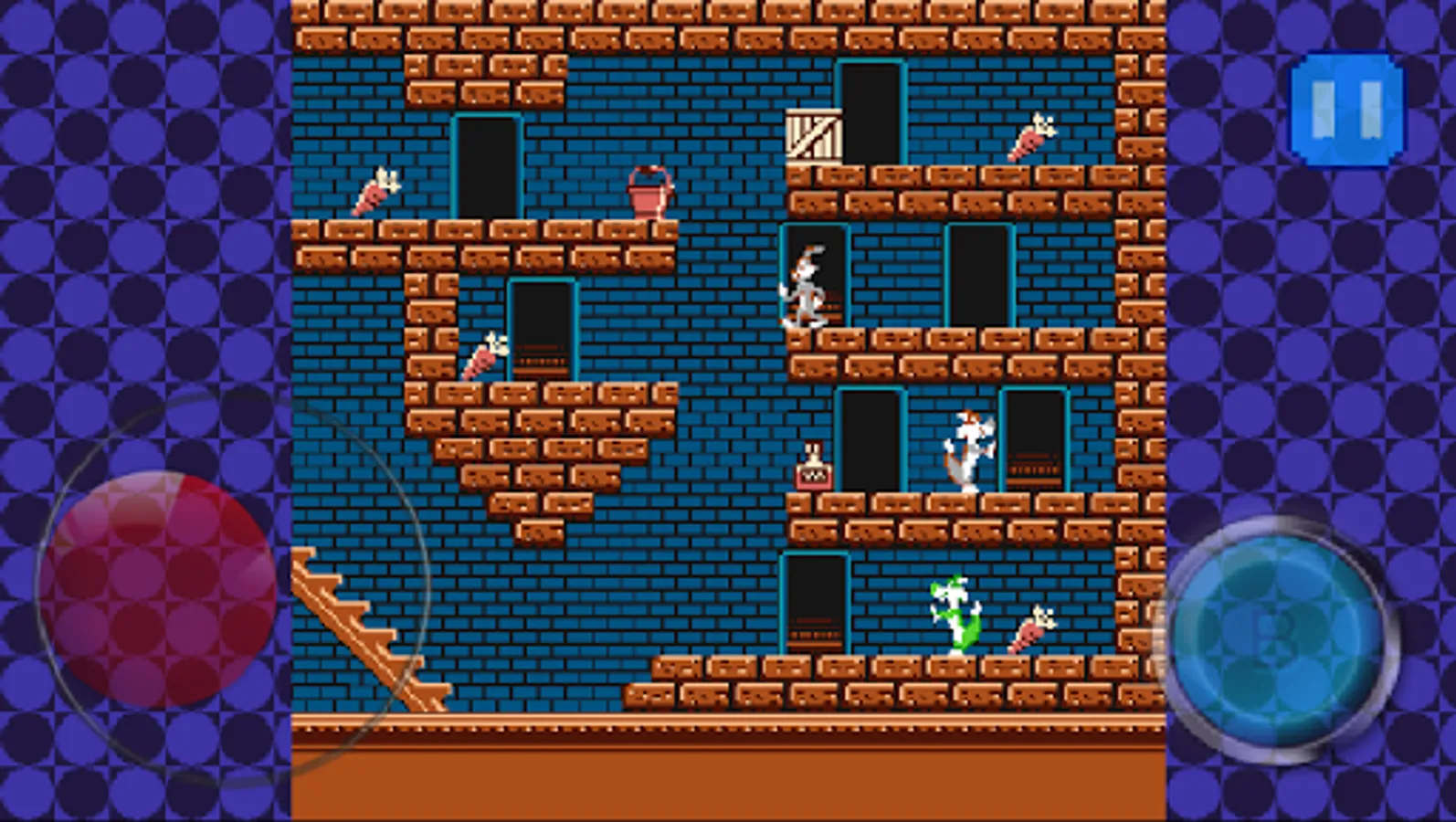 Honey Bunny has been kidnapped and Bunny hero must travel through 64 levels in order to save her. To get past each level, Bunny hero must collect all 8 carrots in each level.