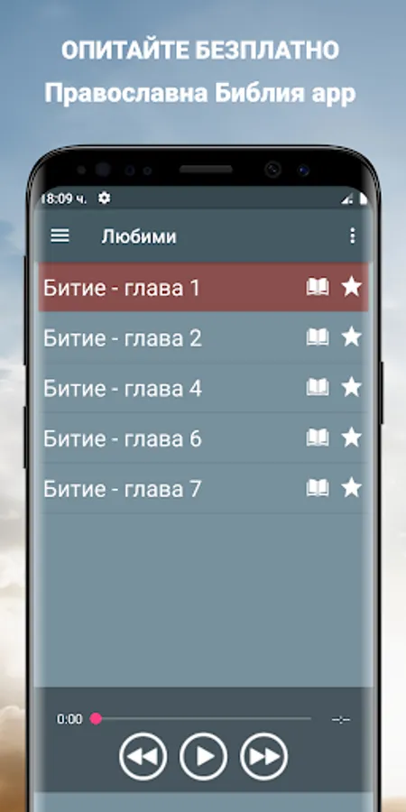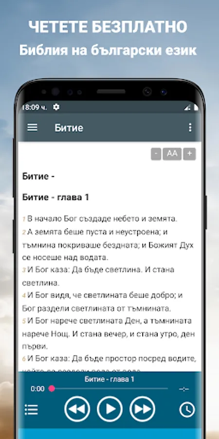 Download the Bible Audio bg app in Bulgarian, listen and learn from your Android phone or tablet. Download it, use it and share it with your family and friends. Press the audio icon to select the chapter or verse you want to hear. Listen to the Bible and experience God's Word like never before.