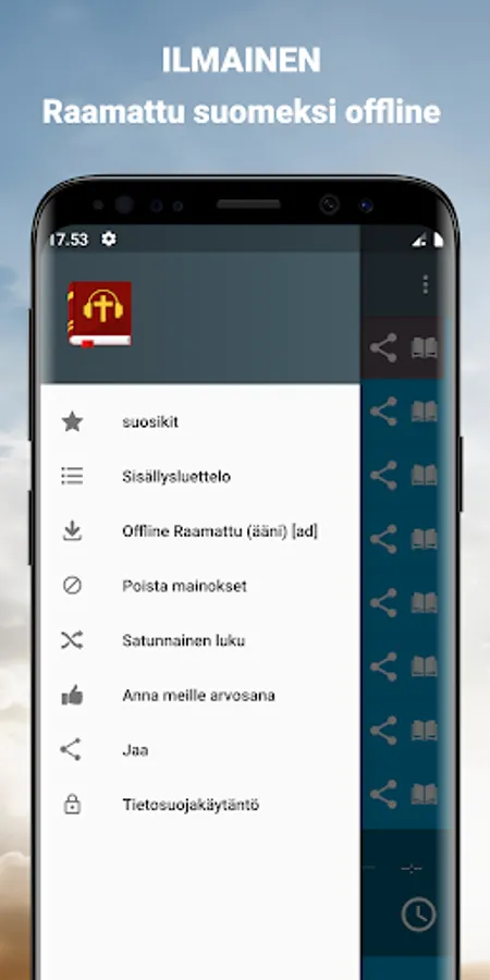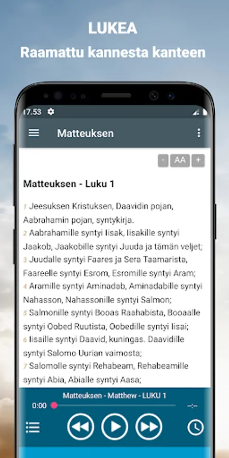 The Bible (Lat. Bible), formerly the Holy Bible and the Bible, is a holy book of Christianity and Judaism (Old Testament), a canon, or indicative collection of texts. The "original" Bible does not exist as a single collection of books, but in the beginning there was a large number of different texts which developed independently and were later canonized or incorporated into the Bible. Finnish Audio Bible: Mobile Bible Offline & Online Book.