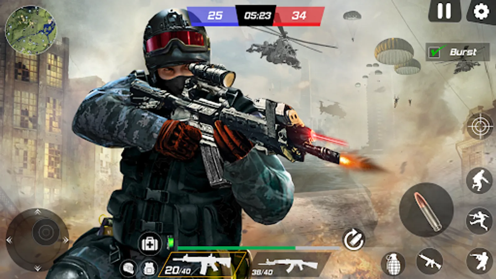 Join the action in real shooting games and fps commando shooting games, download fps commando FPS Strike Gun Shooting Games adventure commando game today!