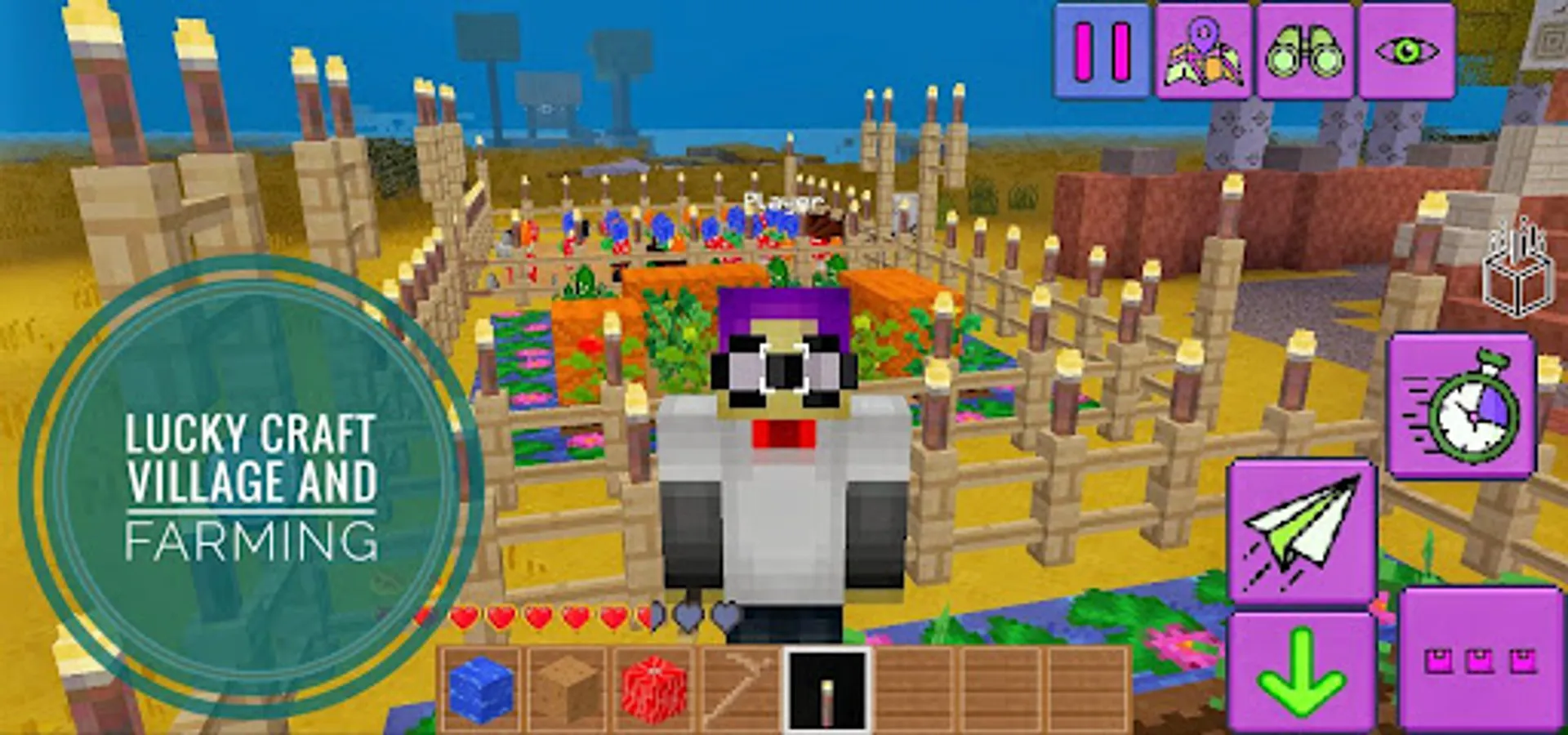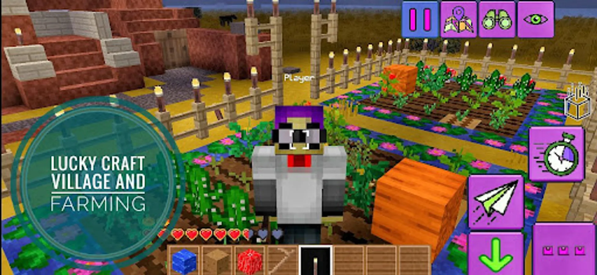 This Lucky Craft Village & Farming game is even more exciting because from time to time a zombie will appear walking in search of prey, so deal with them with a sword or arrow. Enjoy playing friends, I hope you like it, because I hope this game doesn't make you bored quickly because it is supported by simple graphics and HD quality, with FPS quality that you can set in the settings menu, where the settings must be adjusted to the capabilities of your telephone equipment to present the game optimized graphics.