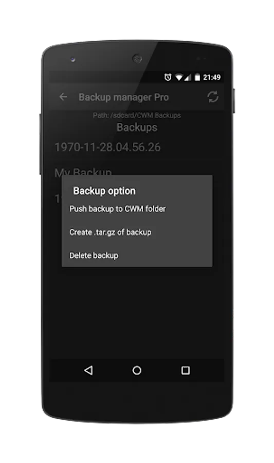 CWM Backup Manager is a simple tool that takes a copy of the backup in the secure directory and saves it on the local storage on the phone with just one click.