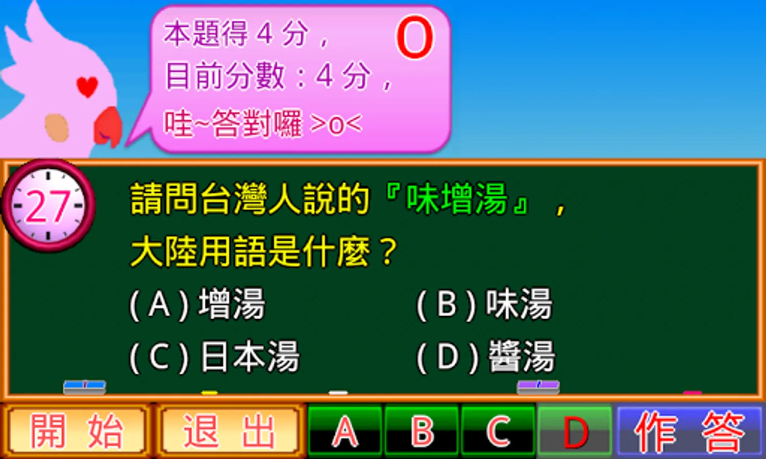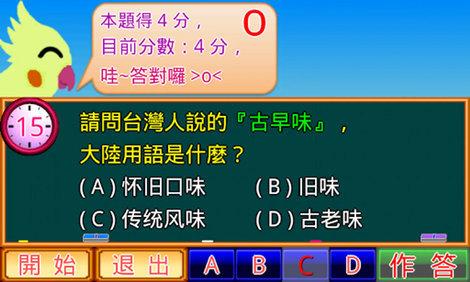 Second, the use of language guessing: the title and question and answer options are using traditional Chinese cross-speaking quiz.
