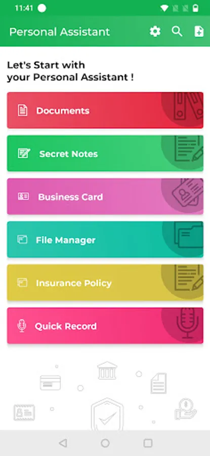 ** It has password protection feature which enable you to keep application password protected. When your run personal assistant, it asks you 4-digit pin.