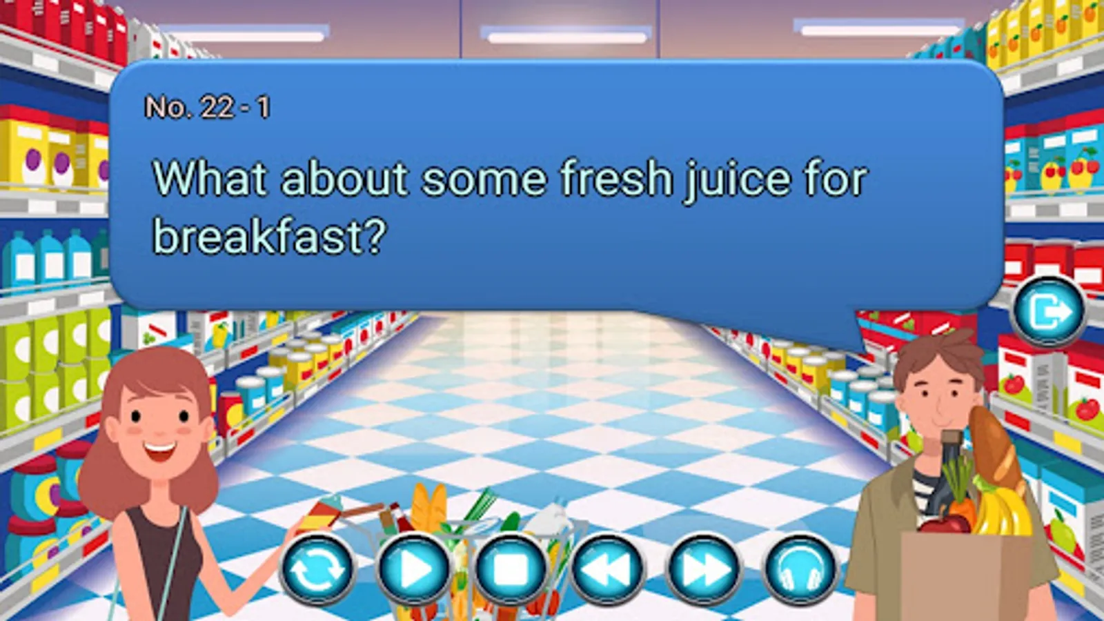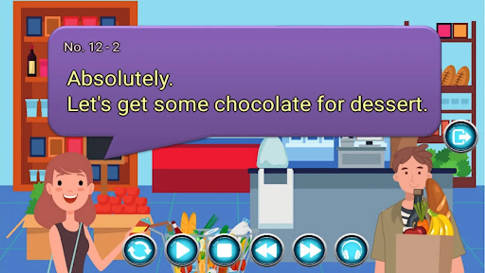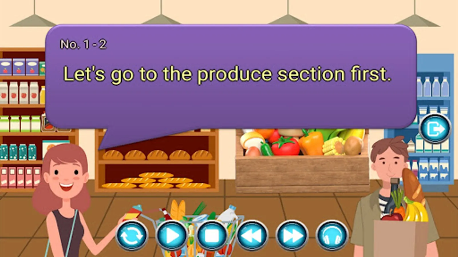 In this APP, you can improve your listening /speaking skills and expand your vocabulary related to grocery shopping and food.