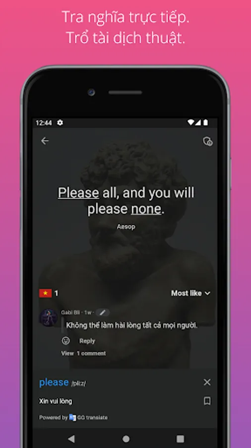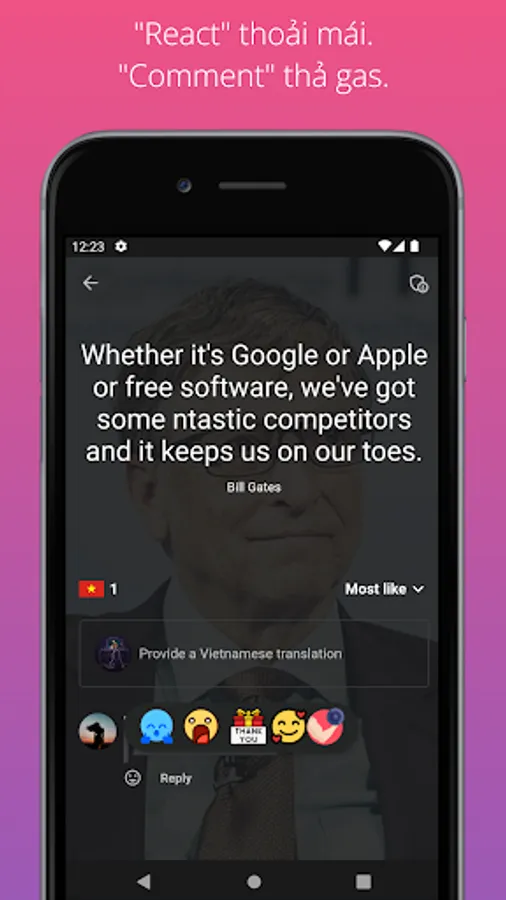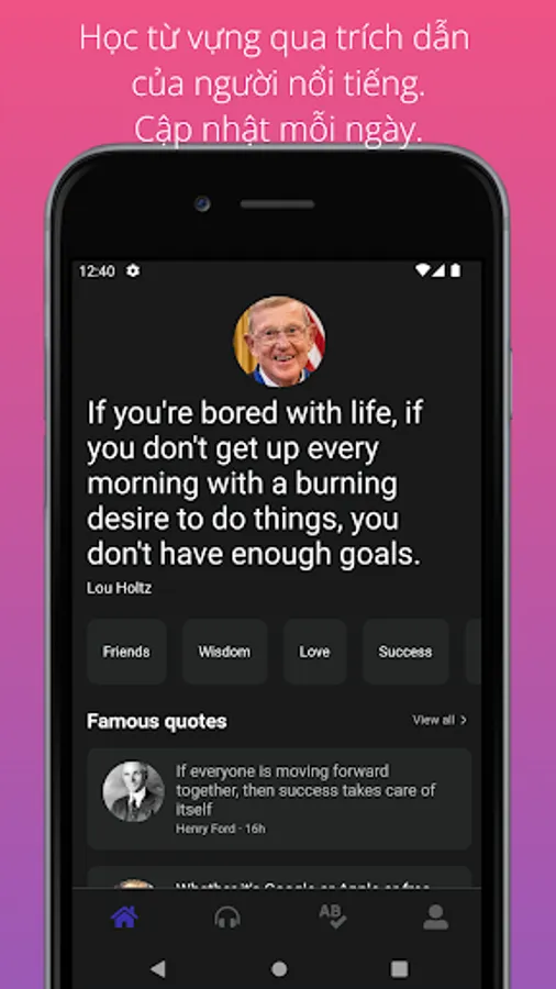 - Increase vocabularies: we provide you many of famous quotes, just one click to translate any words you don't understand.