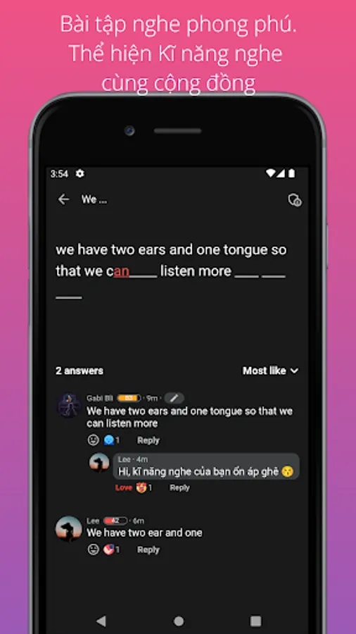 - Practice listening skills: just listen to the audio carefully and type what you can hear. Then the app will show you the result. Let's show your skills.