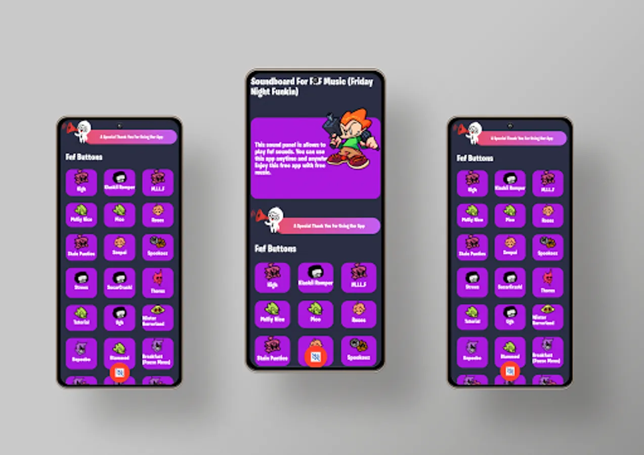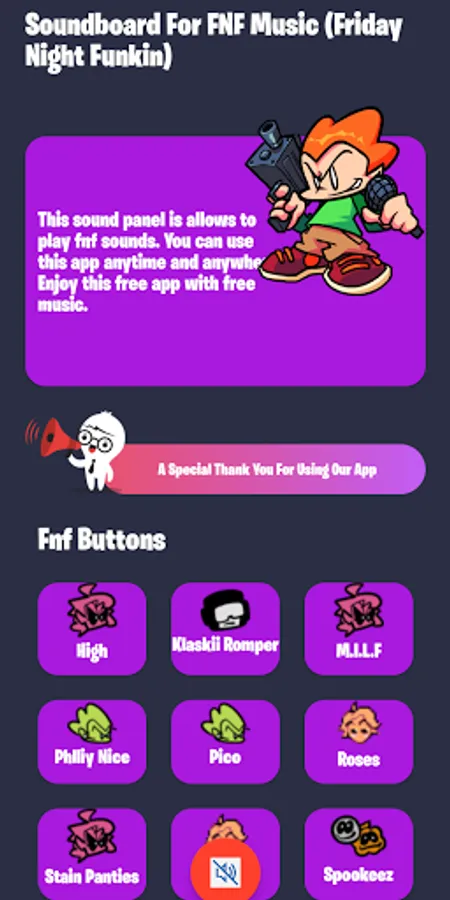 This sound panel is developed to play fnf sounds. You can use this app offline. Enjoy this free app with free fnf music soundboard.
