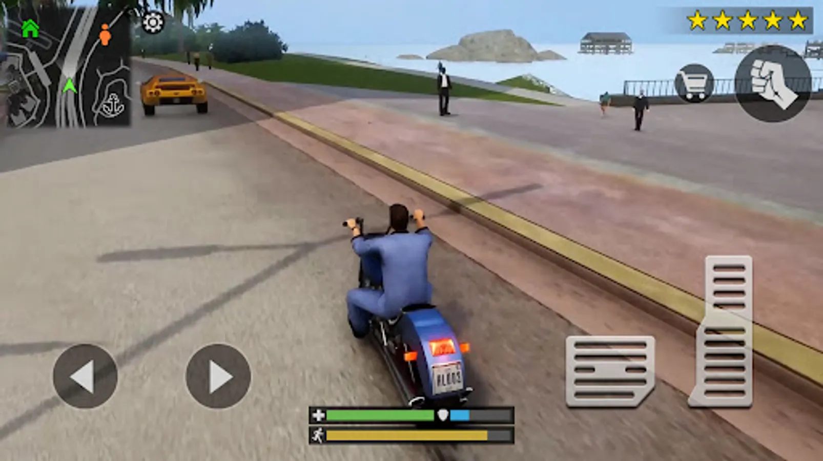 Welcome to the world of real gangster games and crime full of competition. The plot of the game takes place in a modern city surrounded by the ocean. Towering skyscrapers and lavish living make the city an oasis in the desert. This sinful town never sleeps, and its lights captivate anyone who dares to challenge. Come and try your hand at success and glory in this exciting crime city adventure. Exciting adventure missions are waiting for you to acquire the necessary game resources in this real city gangster game that will be useful for you to perform more serious tasks. You will encounter harsh street life, where everyone lives for themselves. The streets of the world always need concentration, as crazy bullets can fly around here, or gangs waging mass shootouts. With fun adventure missions, you can better understand who and how rules this sinful city.