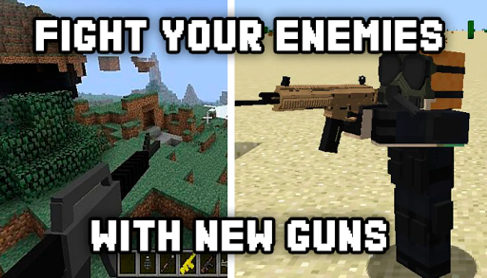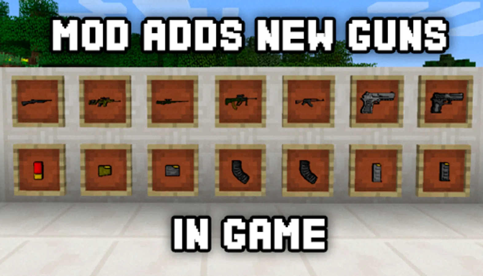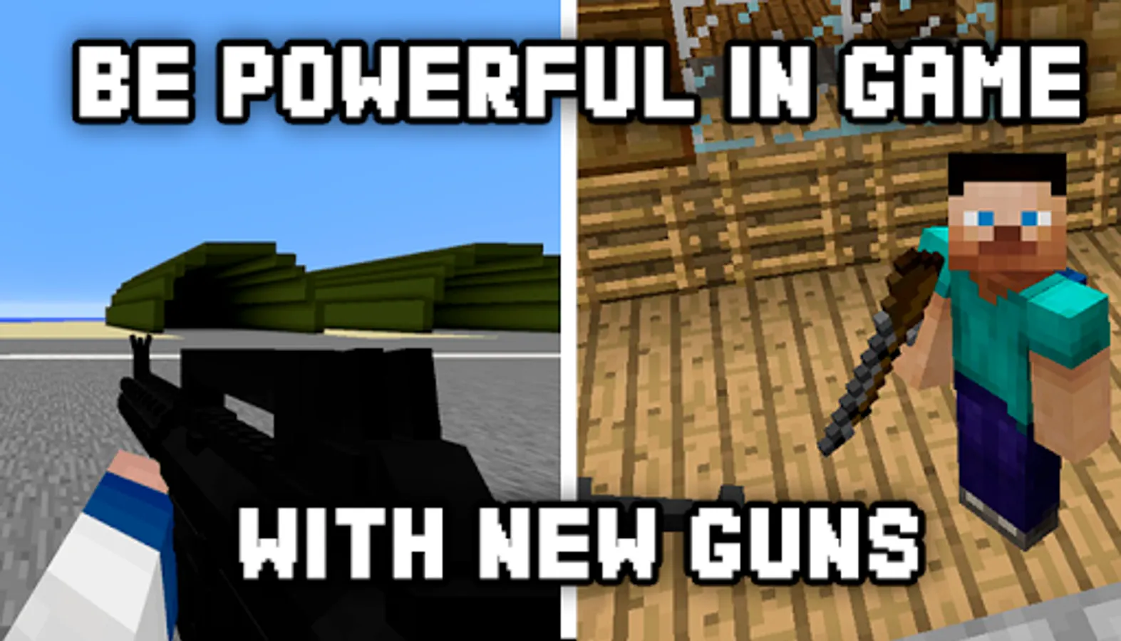 DISCLAIMER: Guns Mod is an unofficial application for Minecraft PE. This application is not affiliated in any way with Mojang AB. All rights reserved. The Minecraft Name, the Minecraft Brand and the Minecraft Assets are all property of Mojang AB or their respectful owner. In accordance with http://account.mojang.com/documents/brand_guidelines