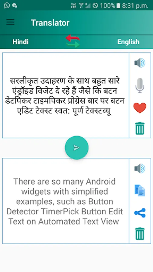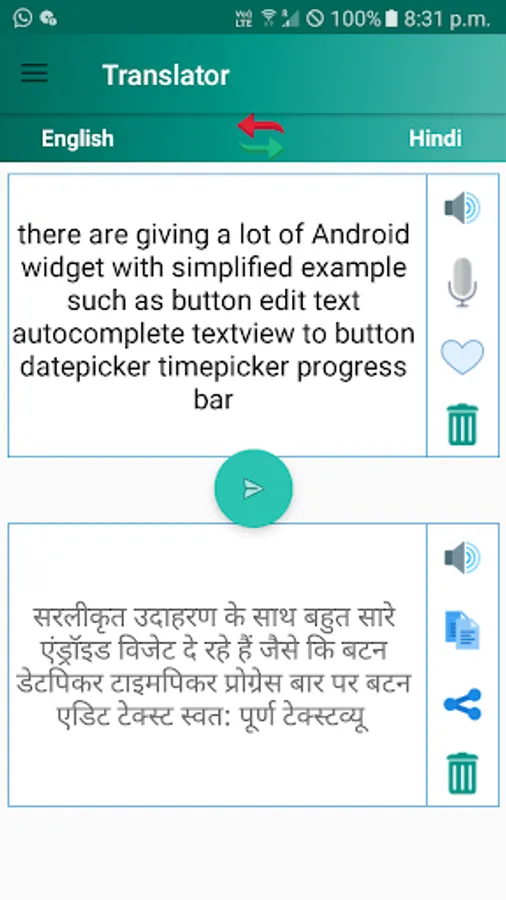 - Tap to listen to the translated text with easy language voice Hindi English Translator pro.
