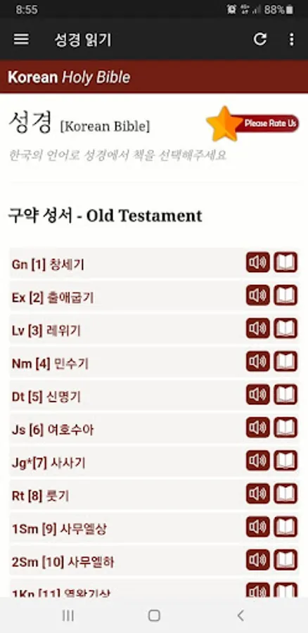 Korean Bible (Bible and Hymn Free) in Korean - Free Bible and Hymn. This application is a place to read and listen to the audio version of the free Korean Bible. Application to read verses for you in Korean. This Korean Bible app provides a complete set of all scriptures of the Old and New Testaments. Also includes a Korean Bible text version for reading. You can read and hear the Word of God at the same time. You can read the bible offline. If your Android device is connected to the internet, you can listen to streaming Korean Bible. With the background player feature, you don't have to open the app every time you listen to your favorite bible. The user interface is designed for easy navigation. Very easy access to all chapters of the Korean Bible. You can share this app with your friends and family via text message, social networks or email.