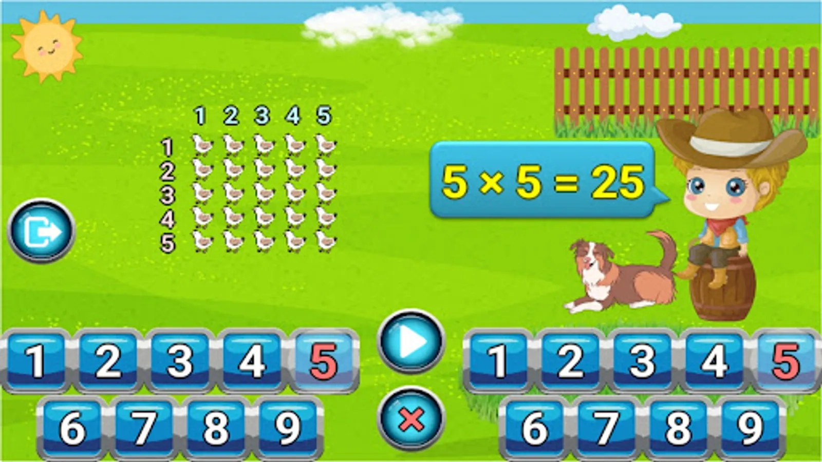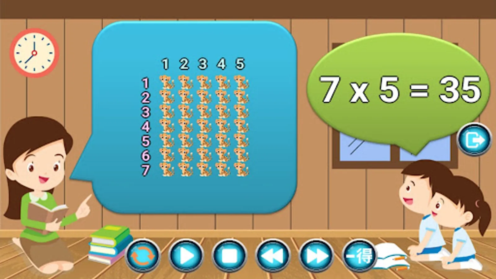 Players can read the ninety-nine multiplication formulas aloud along with the game,