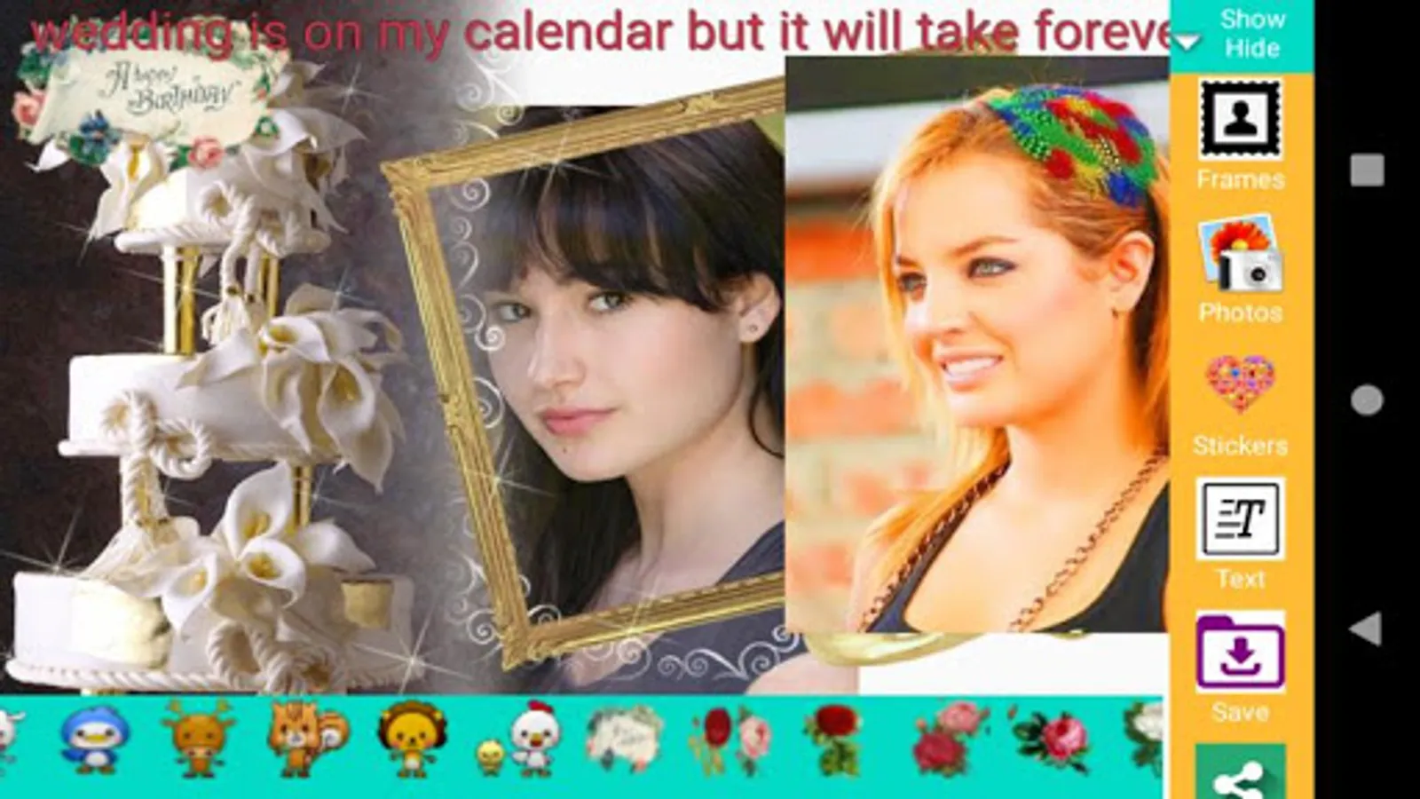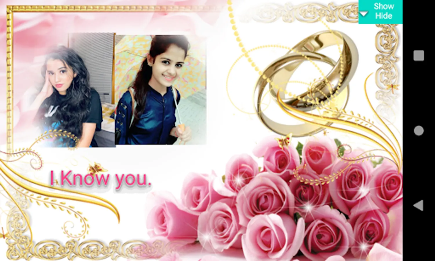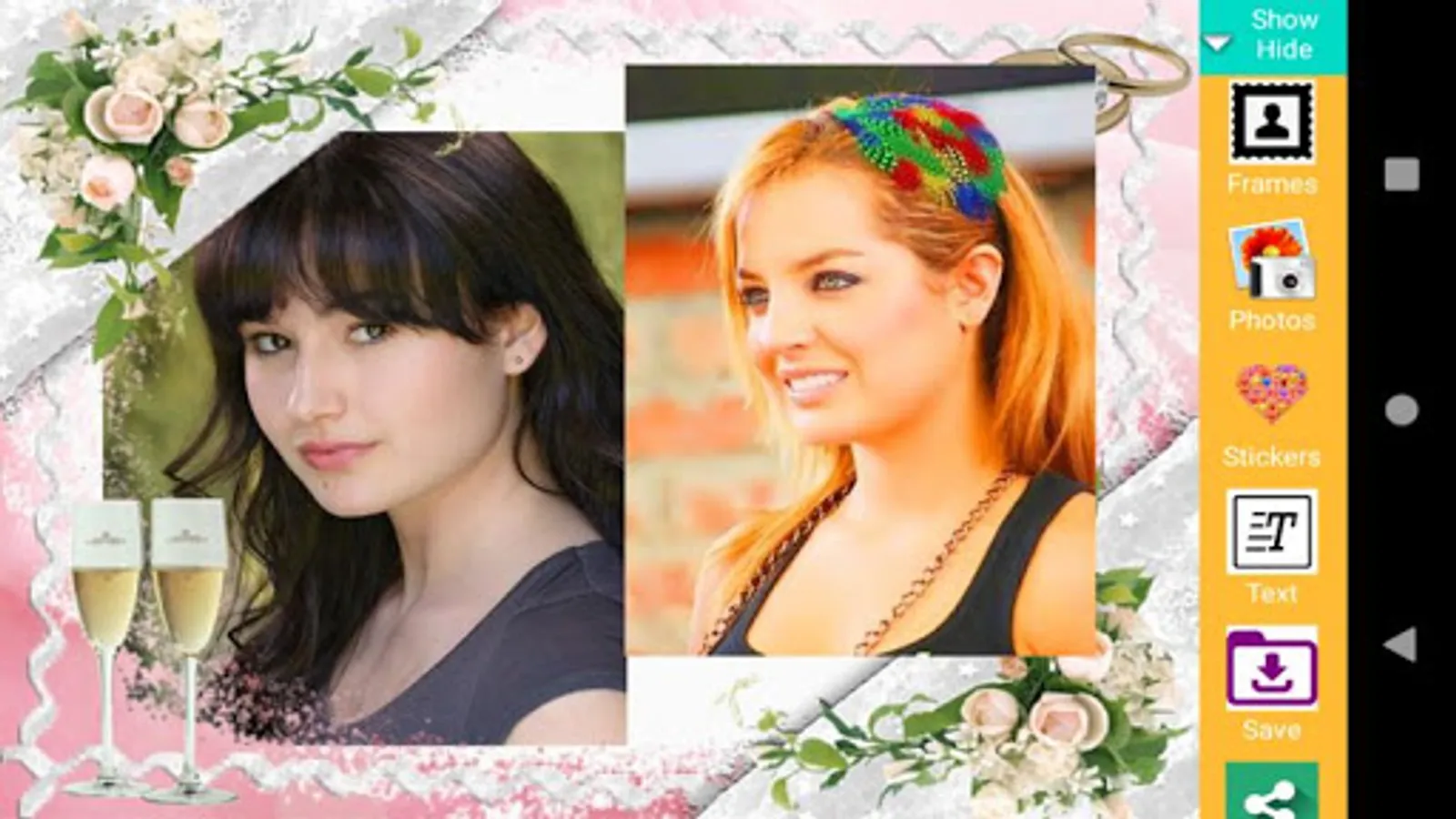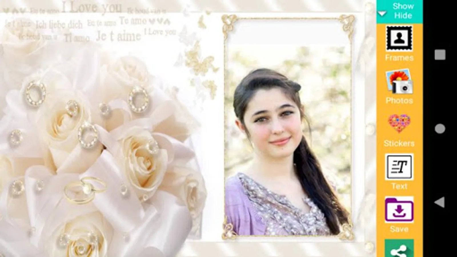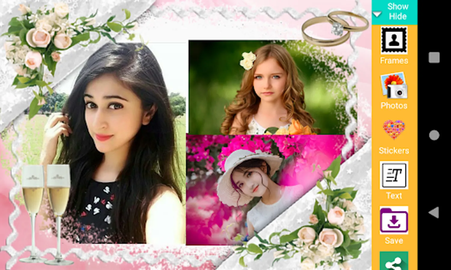 Wedding Photo Frame is a powerful collage maker for you to create amazing collages using your photos, text with cool fonts and frames.