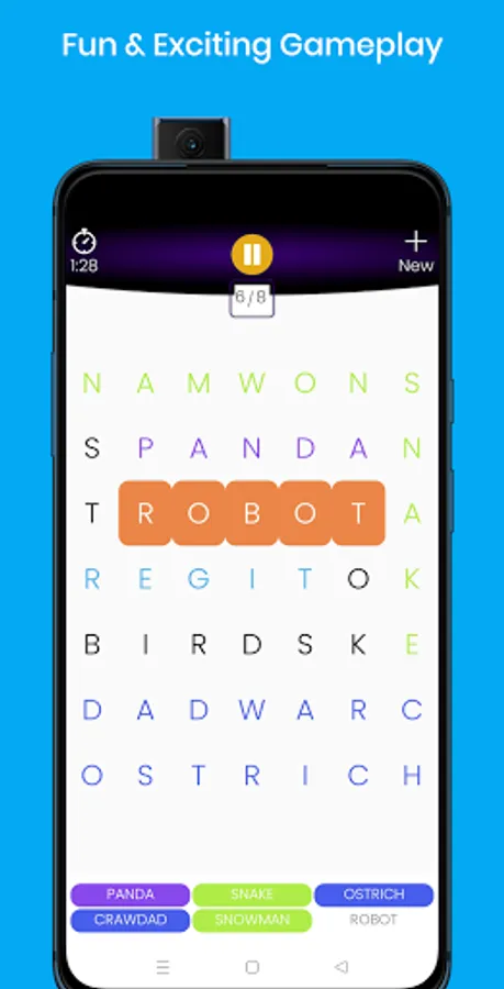 - Swipe up, down, left, right or diagonally to search for given words