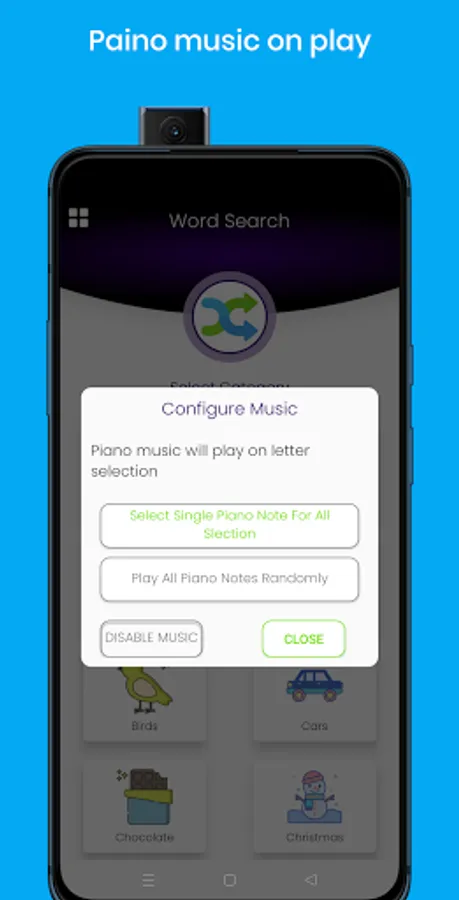 -Unique Feature : Piano tune music(SFX) at word selection (Setting available for play single piano tune or multiple paino tune)