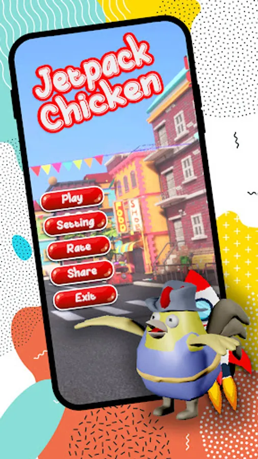 Jetpack Chicken is a fun and original game! tap on the screen to fly the chicken from running, on the 3rd tap the jetpack rooster roket booster will be activated. Don’t forget to tap when jetpack chicken land on the road for first time, be precise to click exactly when bird land on the first two jump. if rooster jump is perfect on time then it will fly for long distance and hence more score will jetpack chicken get.