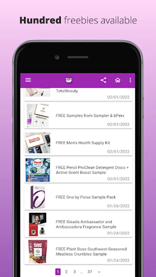 A: After you have installed the app, choose any freebie you like and read the instructions on how to claim this freebie, then click the "Visit This Offer" purple button OR click on the blue hyperlink, if available. Next, you’ll be taken to the company’s website offering the sample, where you have to fill out and submit a request form (most often), take a short survey…etc.