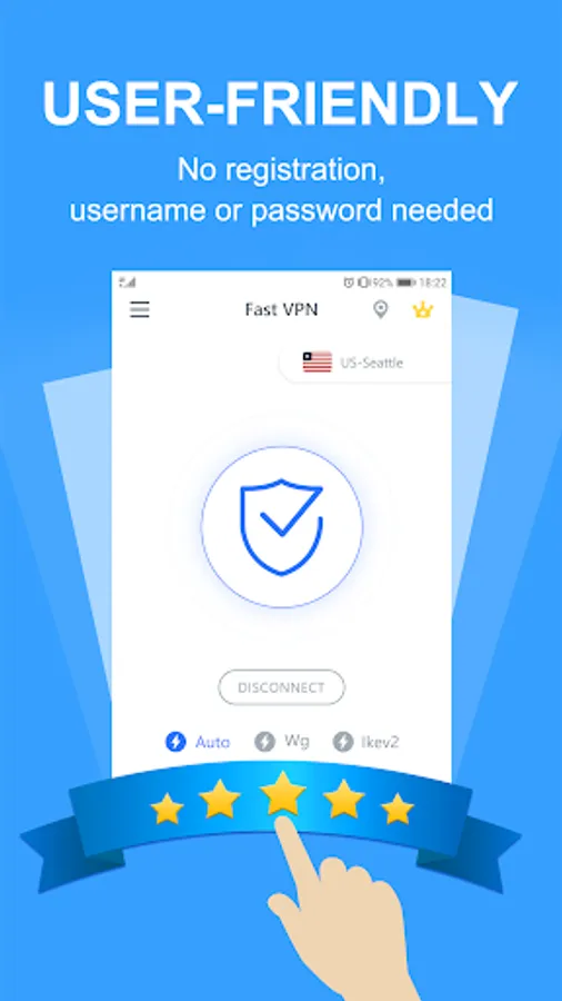 • Fast, will connect to the fastest and most recent VPN proxy server.