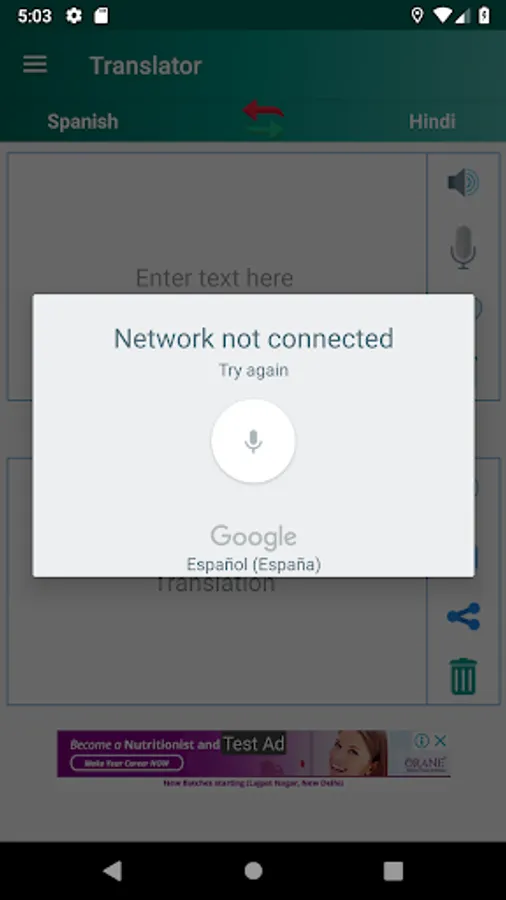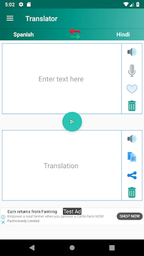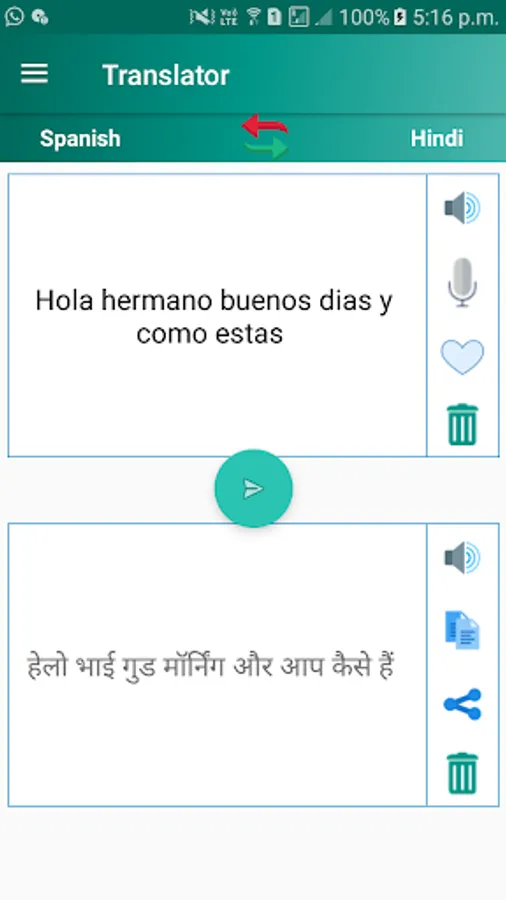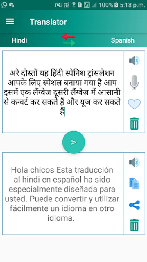 - Tap to listen to the translated text with easy language voice Spanish Hindi Translator pro.