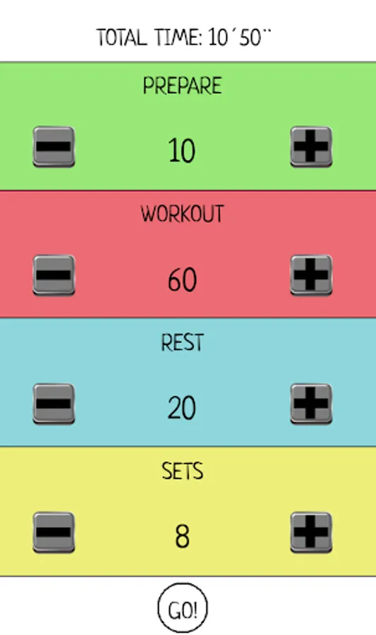 After installing this HIIT timer, you only need to press one button to start a tabata workout with classic settings.