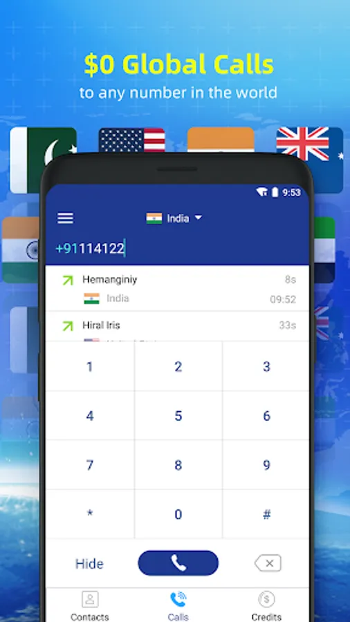 - Blue Call allows you to make a international calls to anyone across the globe for free, even if the recipient has no Internet connection.