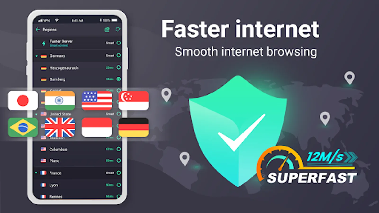 We have built a global VPN network included America, Europe and Asia, and expand to more country soon. Most servers are free to use, you can click the flag and change server as any times as you want.