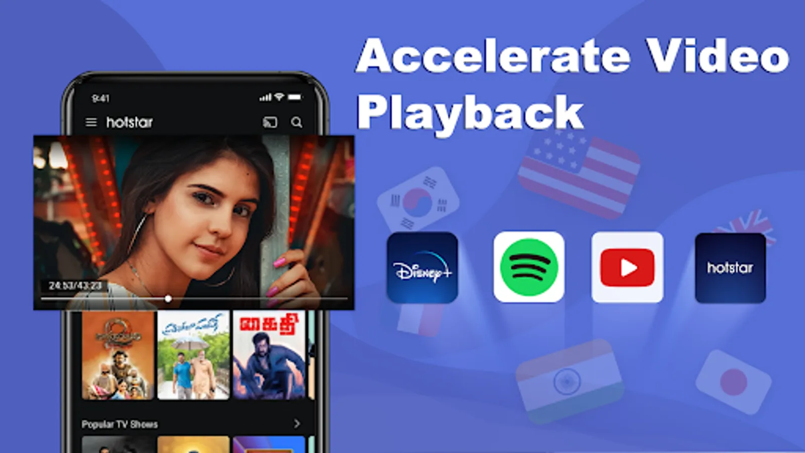 Watch Netflex, Disney plus(Diney+), HBO anywhere you are. VPN Master can boost your network to watch these stream sites.