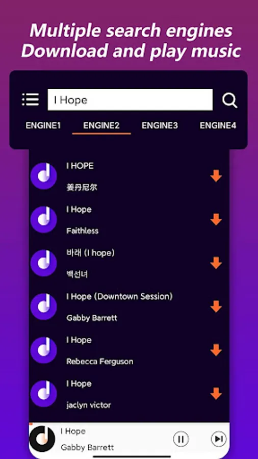 Powerful and fast download music engine, support multiple music downloads at the same time.
