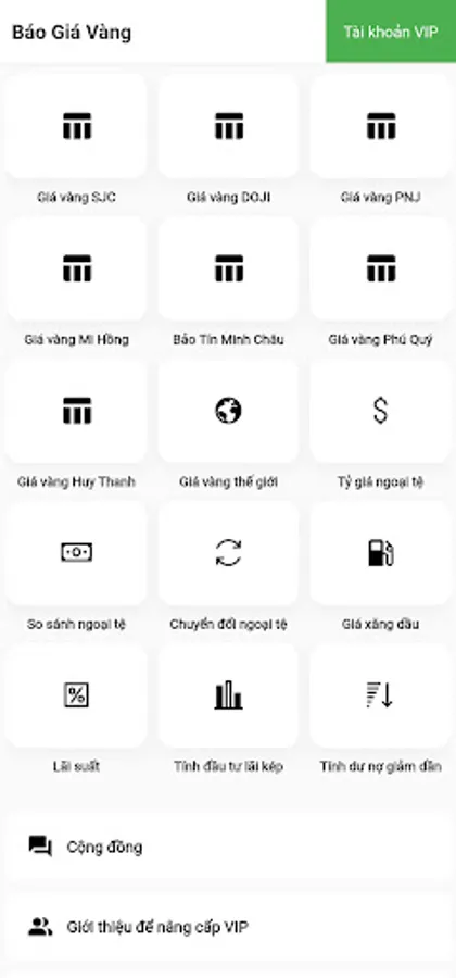 The application updates Gold Price - Foreign Currency data from SJC, PNJ, DOJI, Mi Hong, Phu Quy, Bao Tin Minh Chau, Huy Thanh, VCB and many other banks.