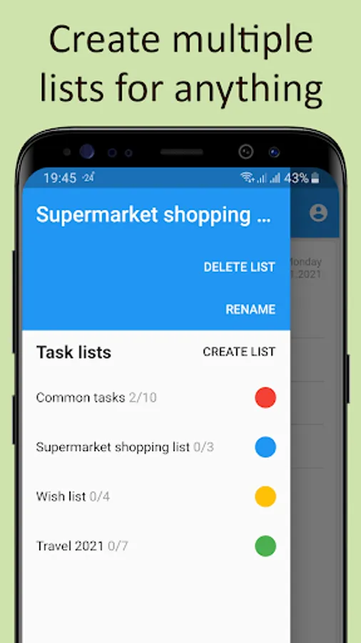 Create multiple lists. Shopping lists, gift lists, wishlists, lists of important calls. Use as many lists as you need.