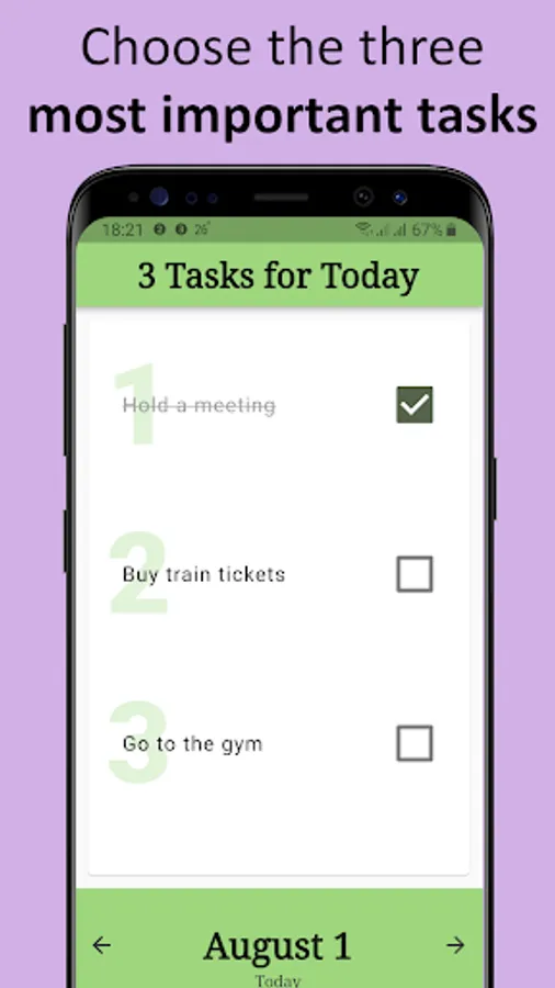 Focus on the three most important things for today. Complete three tasks every day and you will notice how your affairs are streamlined and go uphill.