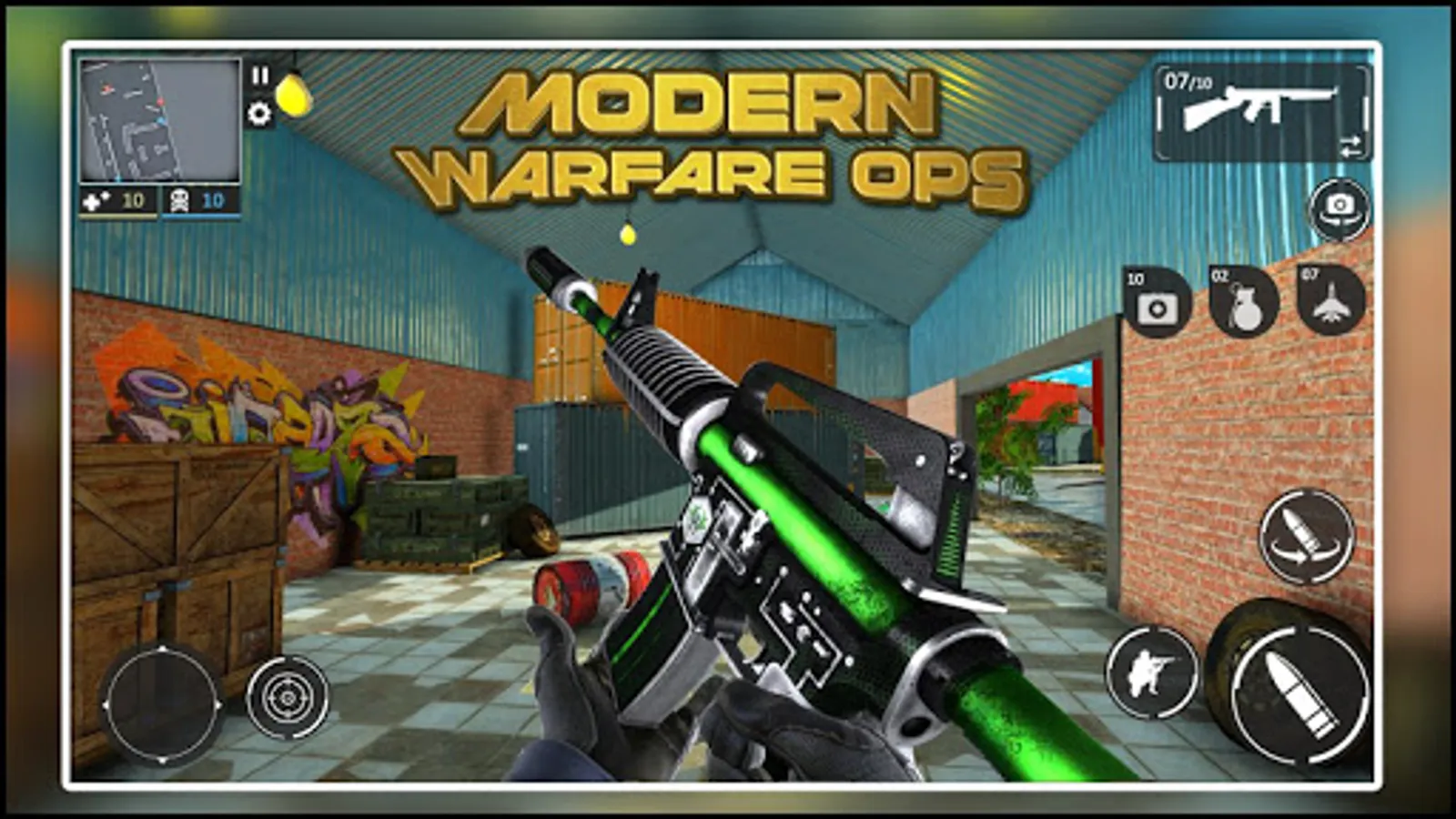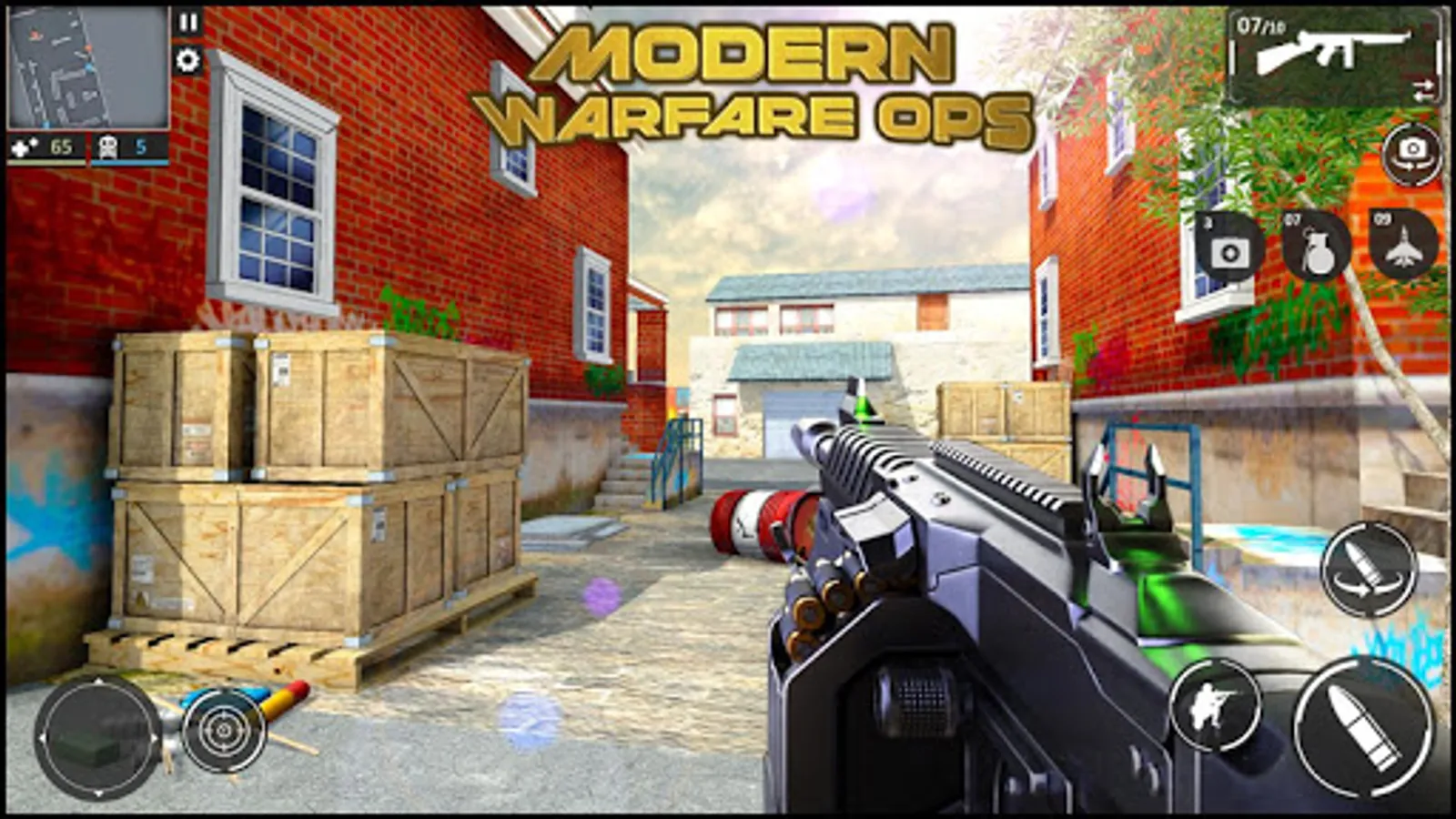 Modern War Army FPS: Gun Games immerses you in a gripping story of heroism and patriotism in the world of shooting games. With the most advanced weapons, guns, sniper rifles, and warfare heavy guns at your disposal, you'll need to plan your counter guns strikes with tactical precision in these shooting games. Set in the modern shooting warfare battlefield. Prove your worth by successfully completing counter critical missions and showcase your sniper shooting skills as the best shooter in hunting down terrorists in these challenging shooting games. Remember, as the commando and first line of defense for your country, you have the responsibility to prove your mettle by overcoming challenging shooting and tactical action missions against terrorist forces. Enjoy real looking warfare scenarios in these thrilling shooting games.