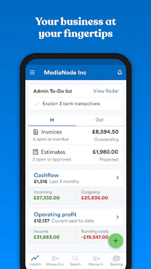 Snap an expense, check your cashflow, stay on top of overdue invoices. Take care of business, anywhere.