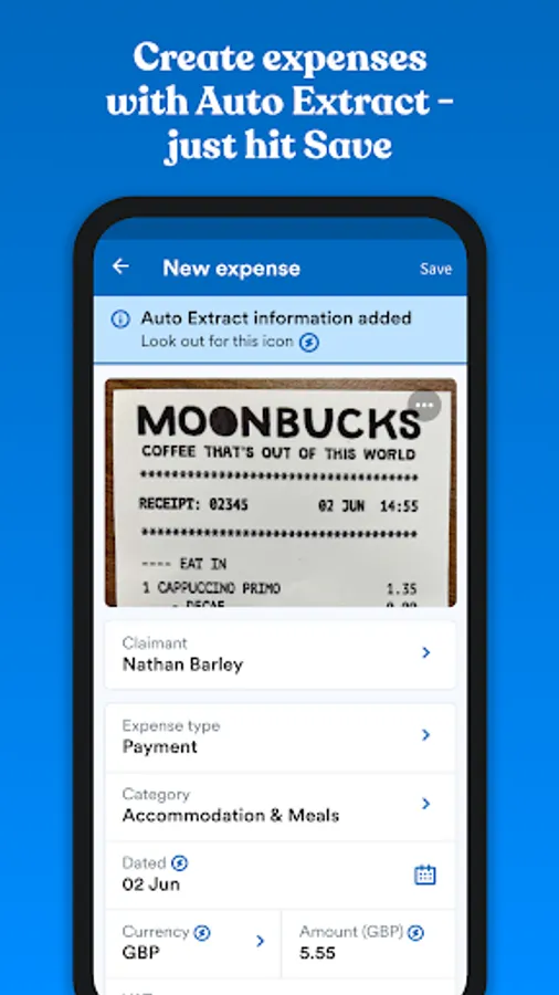 Upgrade to a more automated and organised expense management system. Snap expense receipts, upload them to your account from your phone and FreeAgent will extract the information and fill in all the required fields for you.