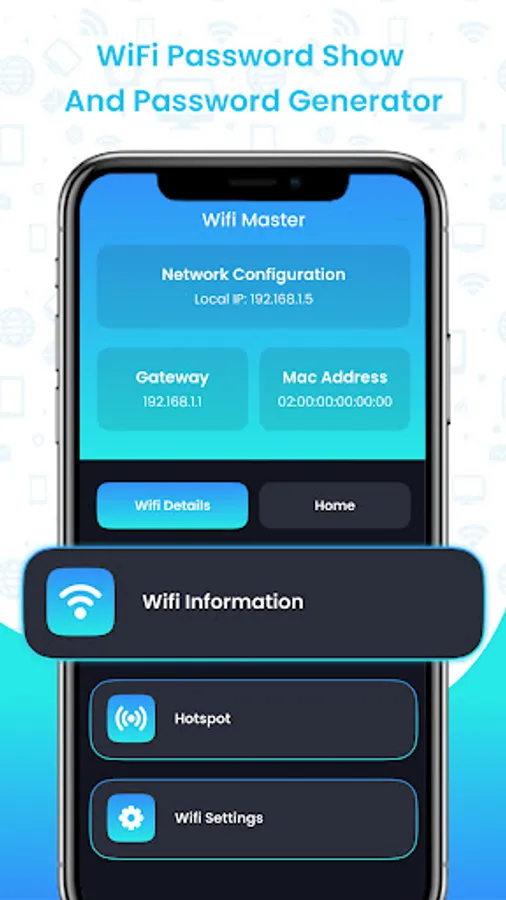 WIFI Password Show: Get WIFI Password has a Hotspot for portable hotspot that helps you share your WIFI connection with other android devices and become a portable WIFI hotspot generator.